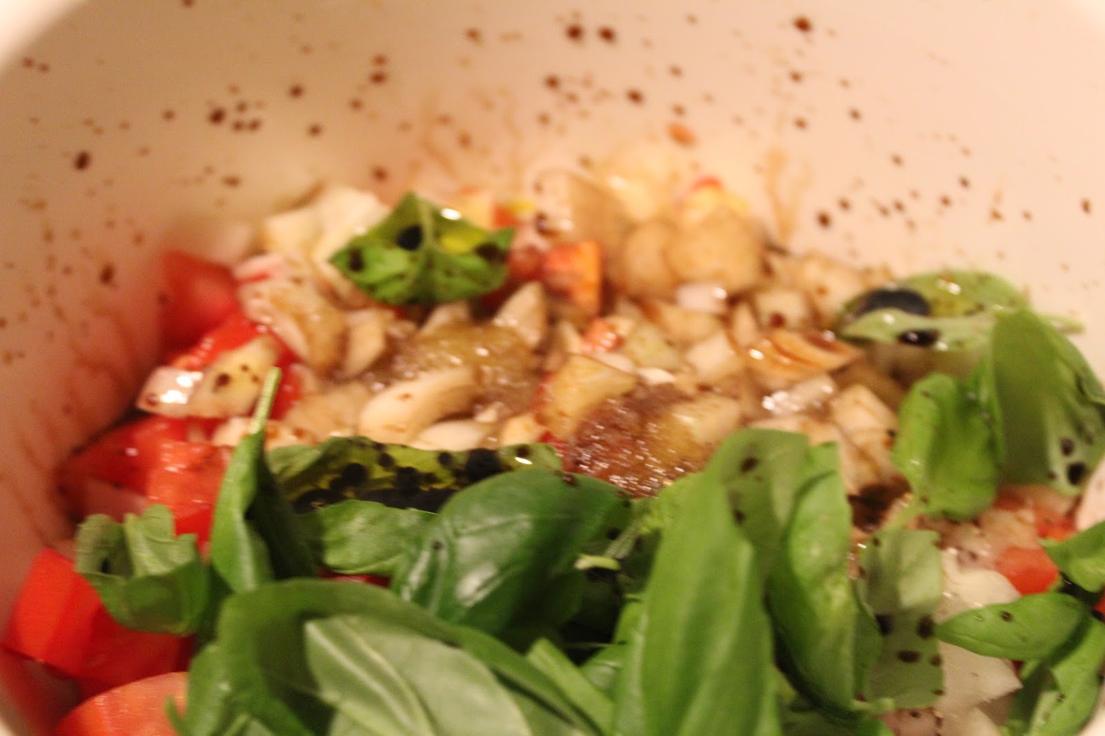 Ein Kilo Tomaten zu Würfeln, bzw zu kleineren Stücken verarbeiten. Ich weiß, meine Zerkleinerungskünste werden vor den Bildschirmen immer kritisch beäugt und bewertet.