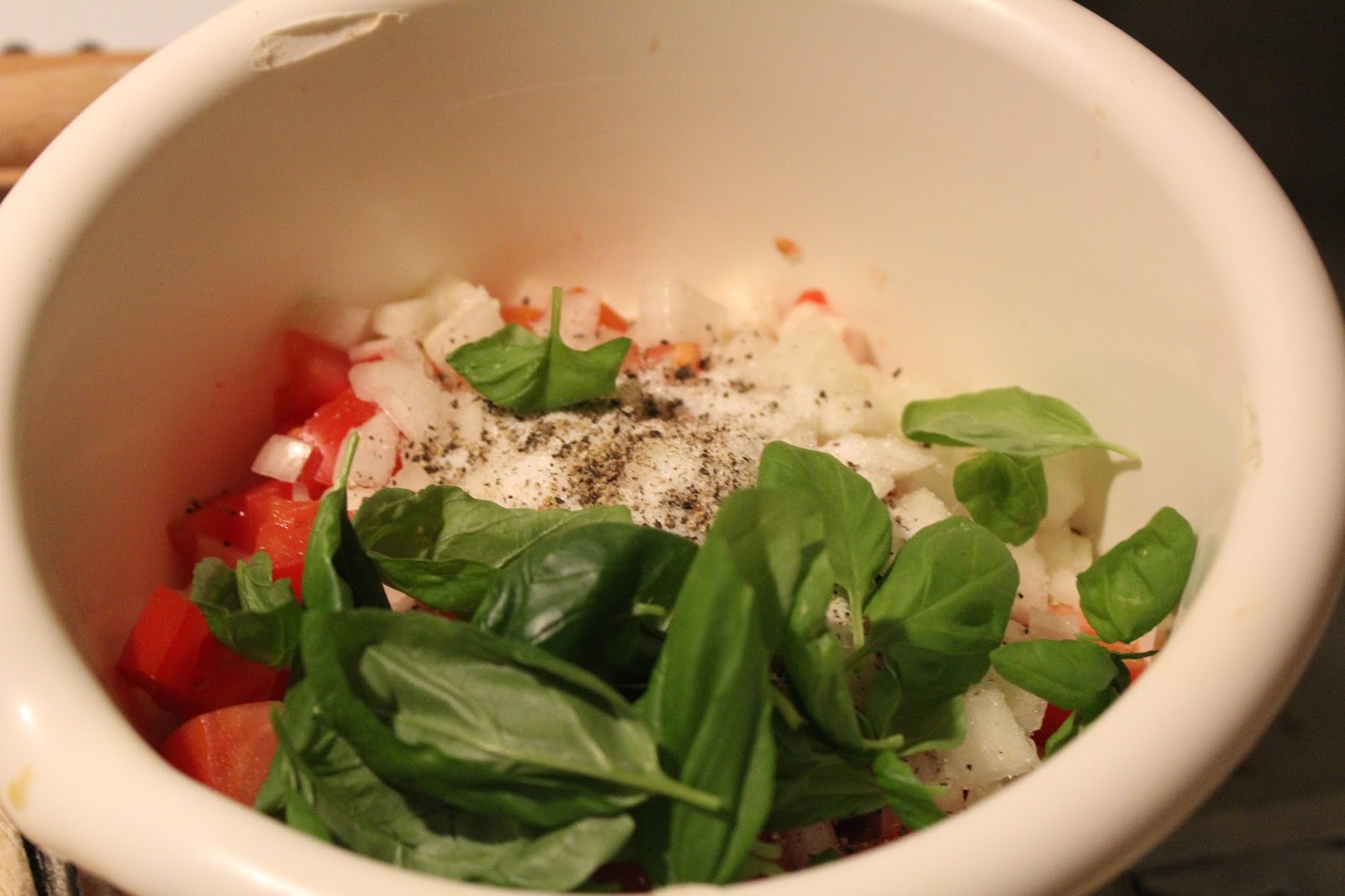 In der Zwischenzeit mache ich die Bruschettaauflage fertig.