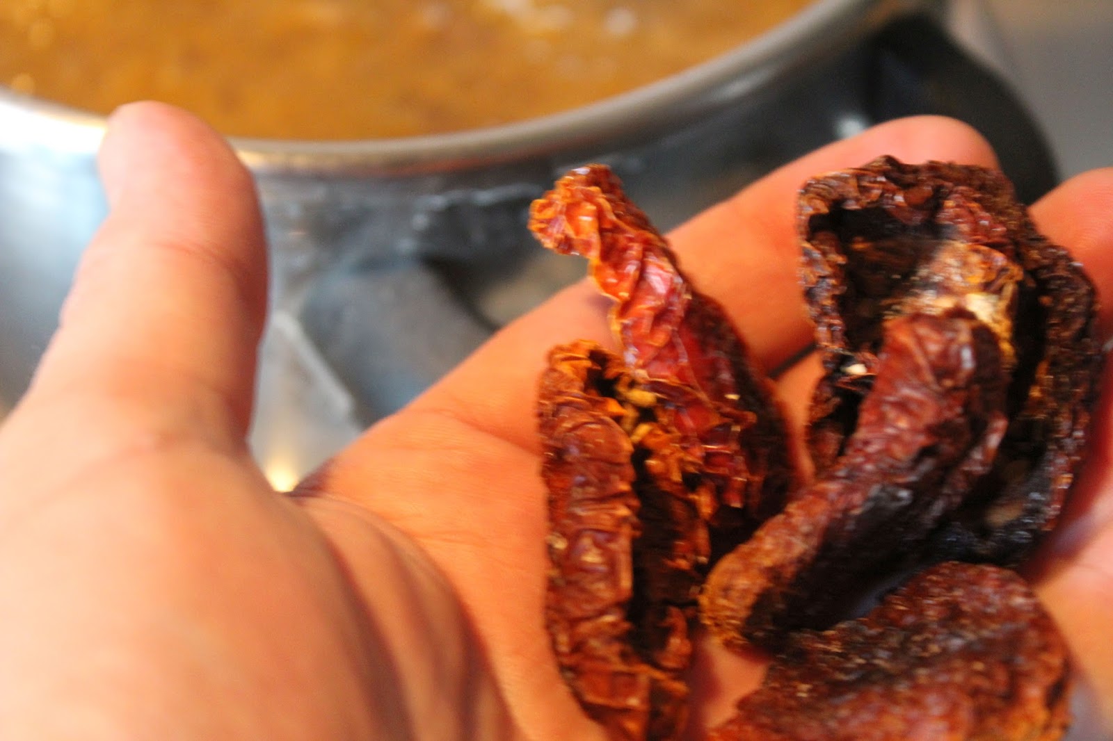 Eine Handvoll getrocknete Tomaten und Peperoni nach Wunsch dazu geben. Das ist gut für den Geschmack und bringt noch ein bisschen Salz