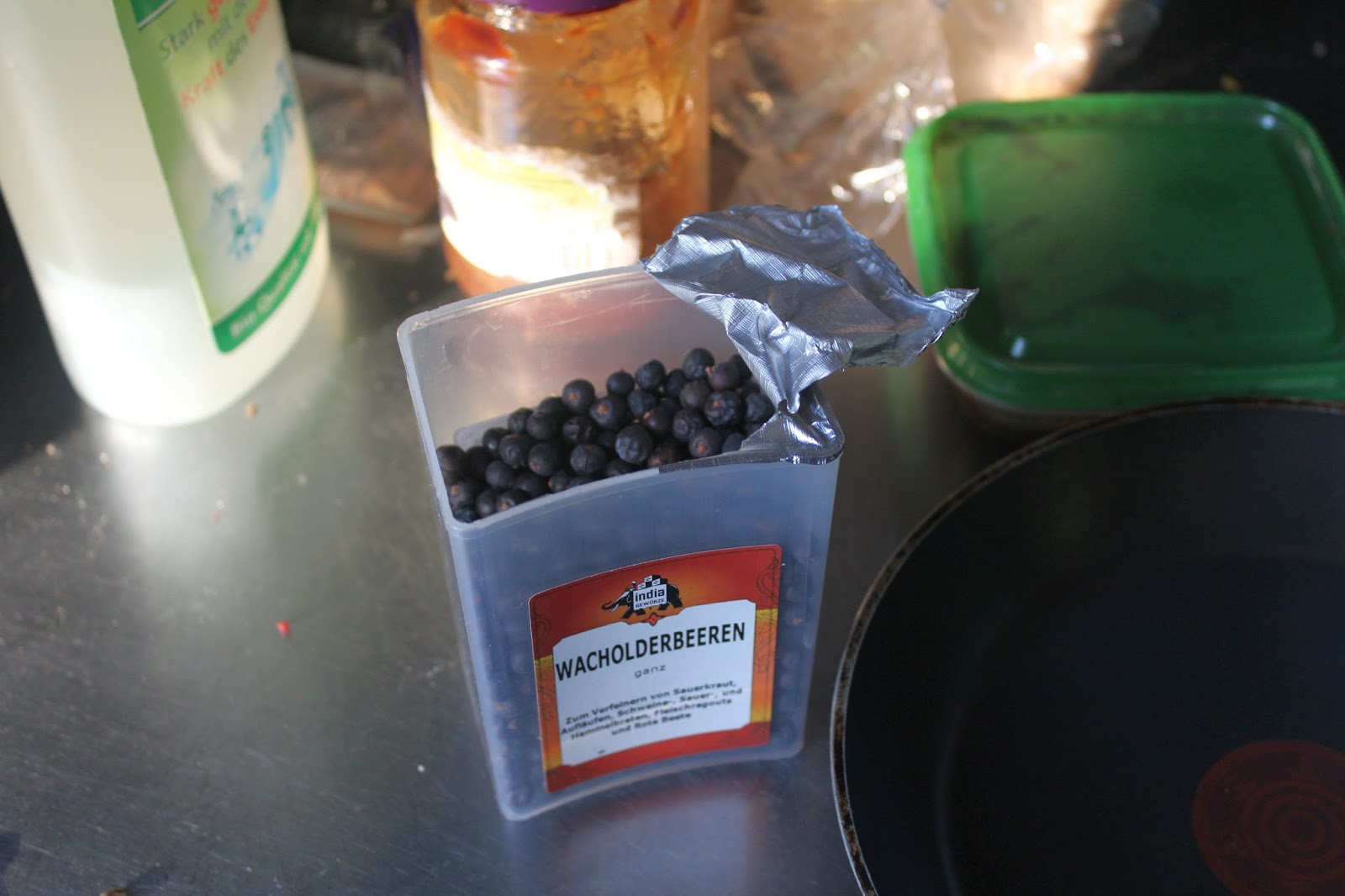 Flavour pairing at its best! Geschmäcker die zusammen funktionieren, obwohl sie offensichtlich erstmal nichts miteinander zu tun haben, finde ich extrem spannend. Eigentlich kennt das intuitiv jeder, auch wenn er sich darüber noch nie Gedanken gemacht hat, wie z.B Camembert mit Preisselbeeren oder Pflaumen im Speckmantel. Das ist natürlich ein noch viel vertrackteres Spiel das immer wieder neu gespielt werden kann und bei denen man teilweise sogar unterschiedliche Temperaturen der einzelnen Komponenten verwendet, damit es funktioniert. Bei dieser Sauerkrautsuppe wird nach dem gleichen Muster gearbeitet, mit Säure, mit Süße und mit deftigem, das leichter daher kommt, weil es nicht gebunden wird.