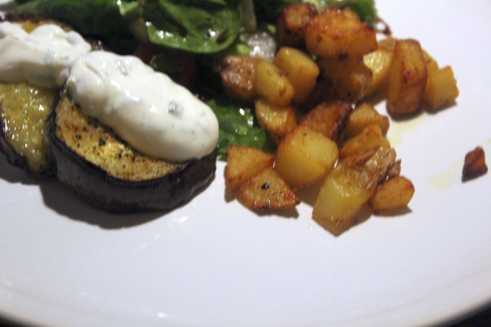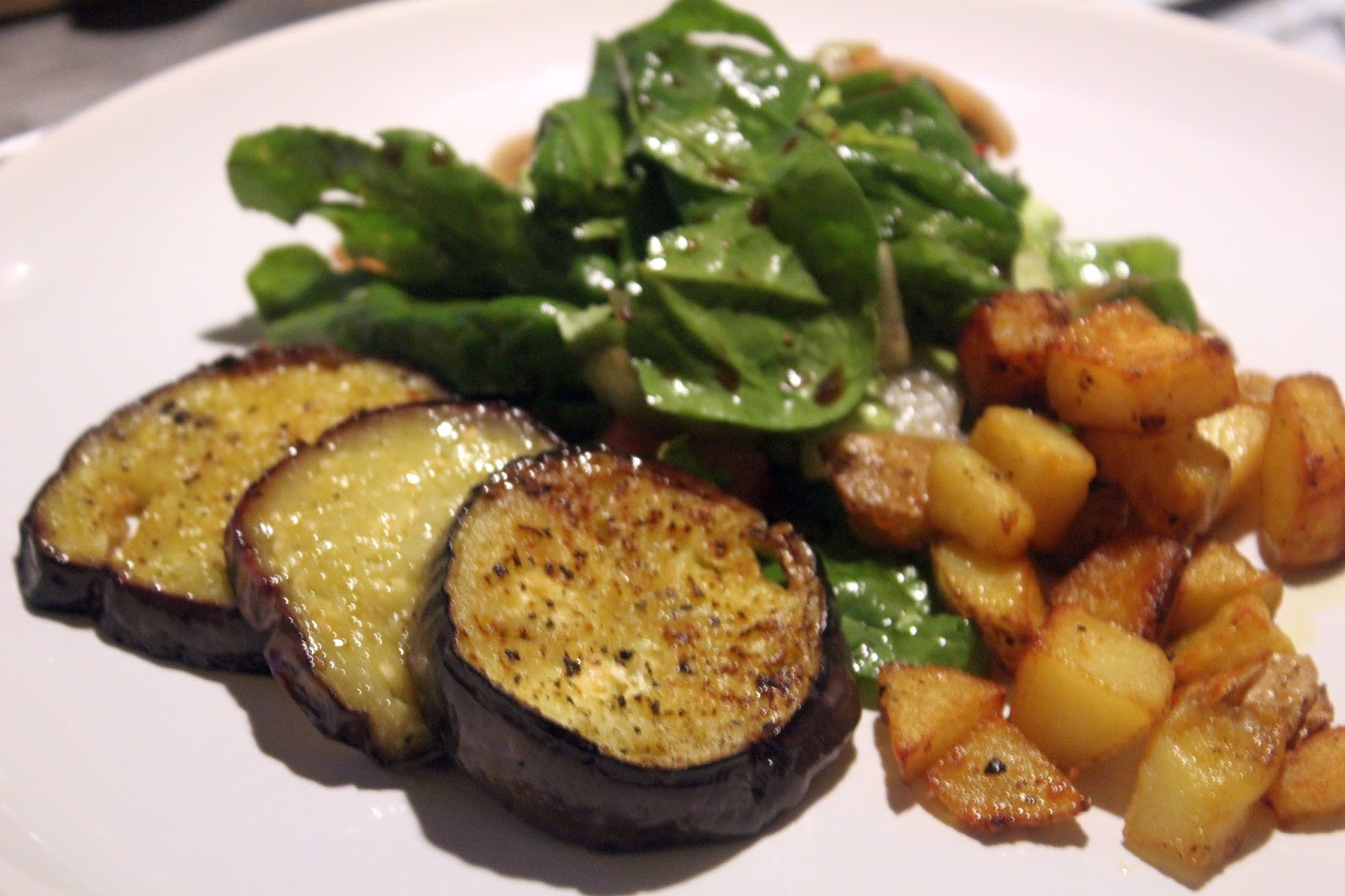 Auberginen mit Spinatsalat und Limettenkartoffeln