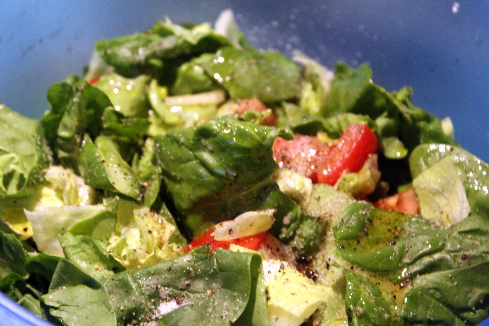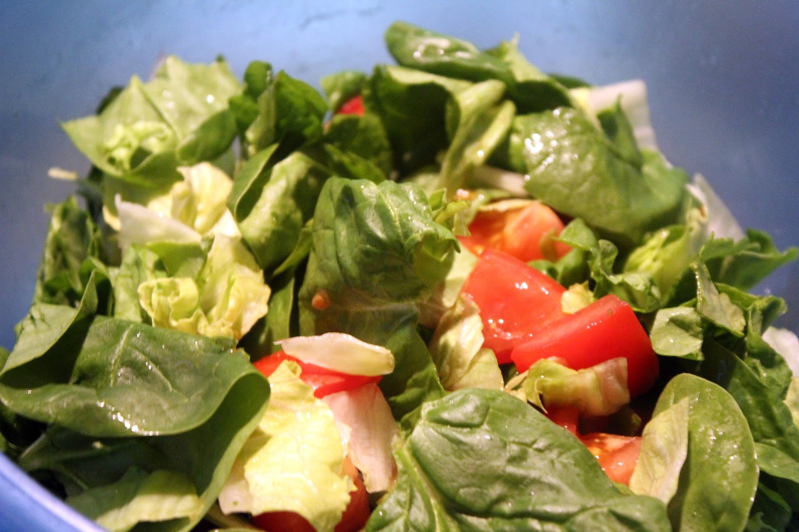 Direkt vor dem Servieren kommen der Spinat zu den anderen Salatzutaten.