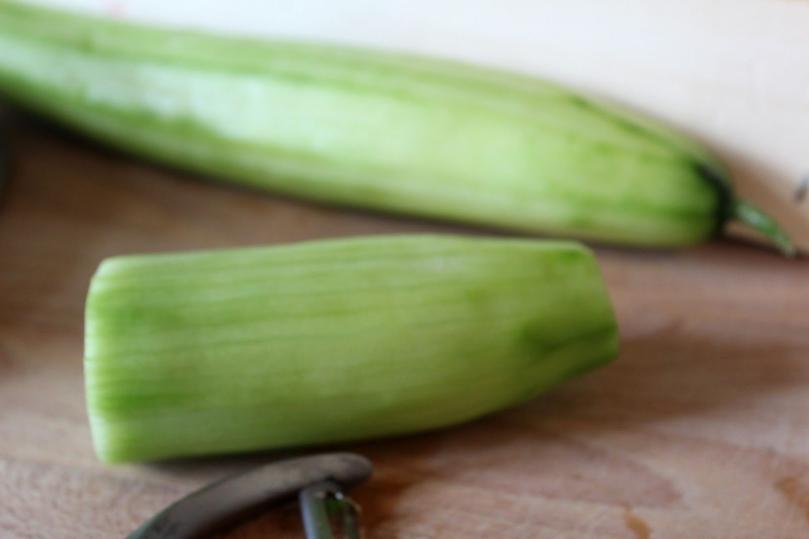 Gurken mit dem Sparschäler von der Schale befreien.