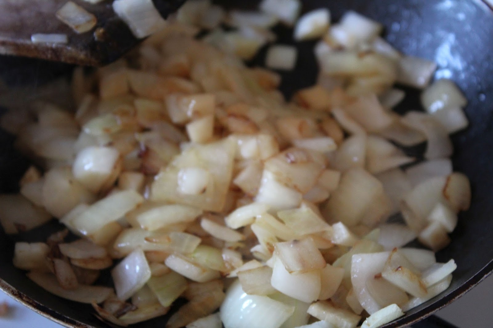 Wenn die Zwiebeln und Knoblauch leicht Farbe bekommen, dann sind sie gut.