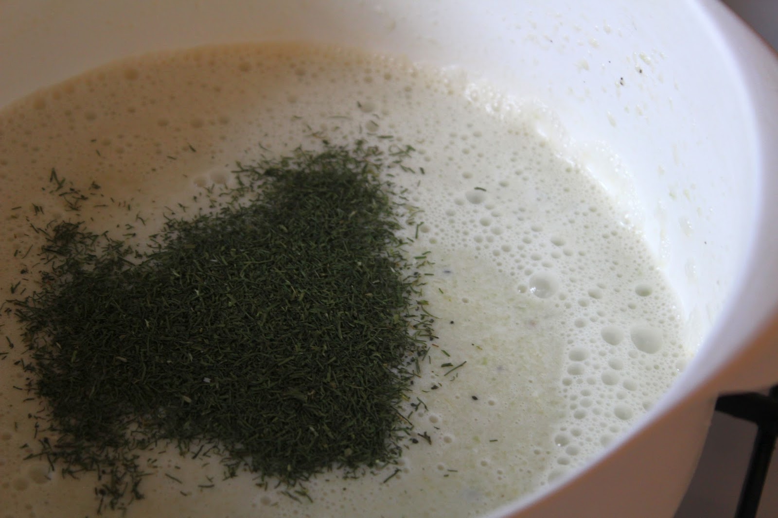 Dill in die Gurkensuppe streuen. Wer den frisch hat, ist ein König. Mir ist gerade mal wieder meine ganze Batterie Kräutertöpfe innerhalb einer Woche eingegangen, Dill war aber ohnehin nicht dabei.