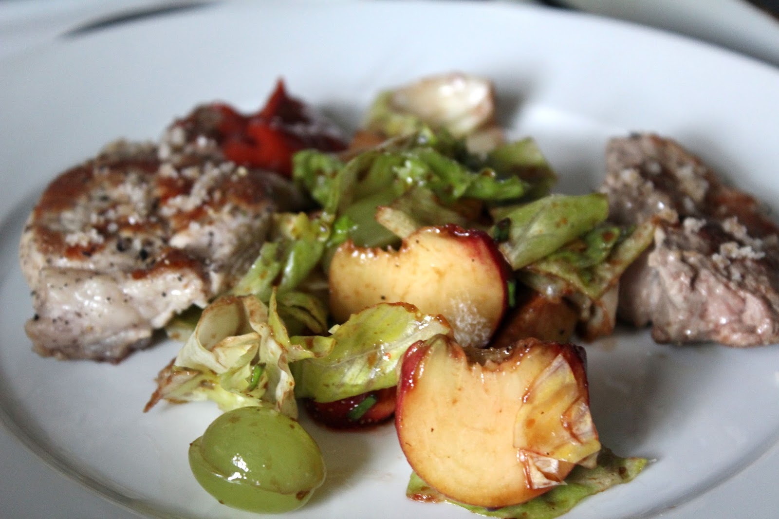 Meine Kinder sind komplett ausgeflippt und die essen echt nicht jeden Salat. Ich würde die Klientel für den pikanten Obstsalat eher weiblich einschätzen, aber hier habe ich kleines Gimmick noch Schweinenacken für die Herren der Schöpfung gebraten, dazu kommen wir gleich.