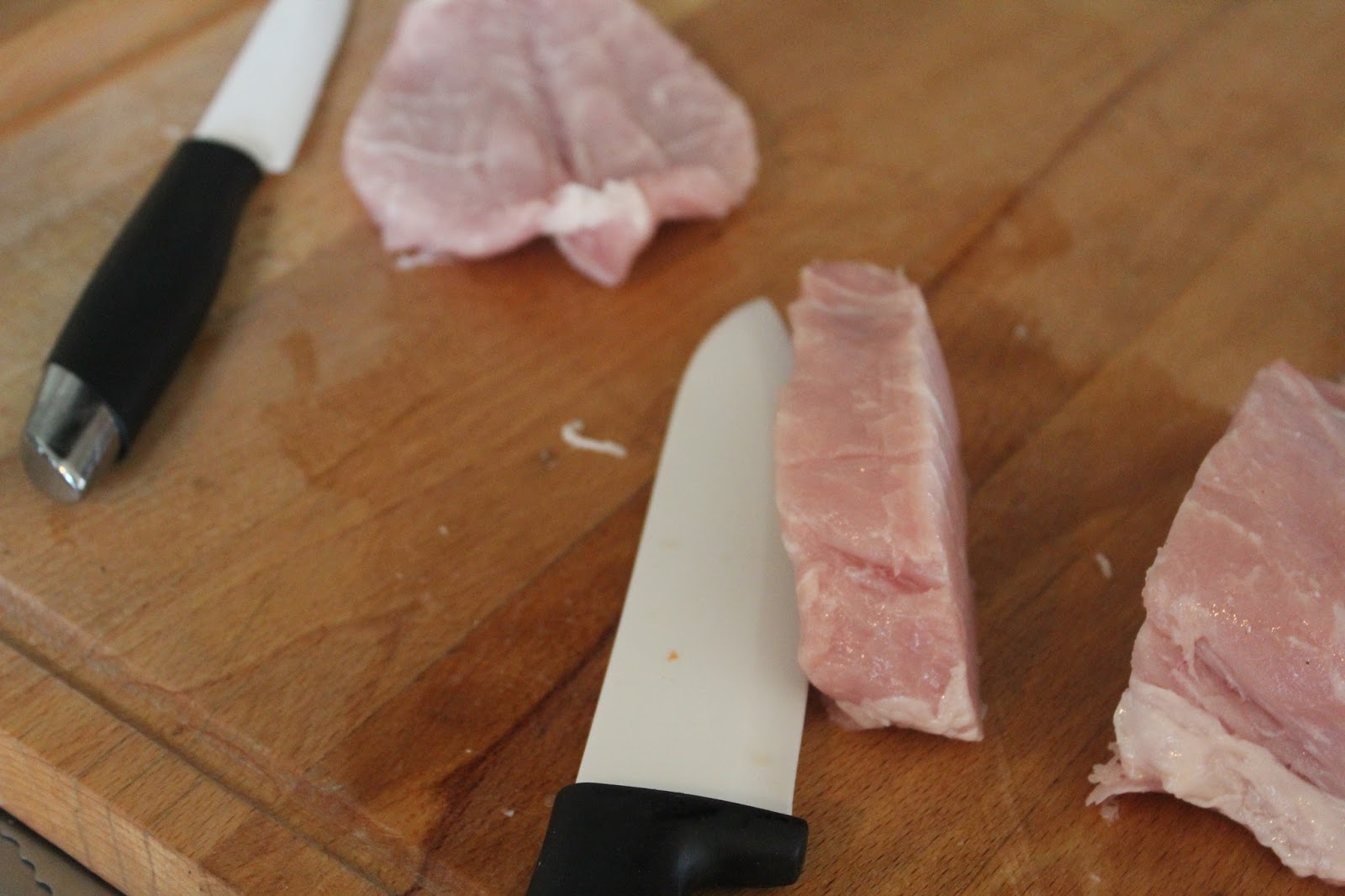 Die Fleischsorte ist im Prinzip egal, ob Ihr Schweinerücken, Oberschale, oder Nacken nehmt. Ich habe aber eigentlich immer einen Rücken im Kühlschrank, weil man den immer irgendwie bei der Familie los wird. Bevor es richtig losgeht, die Sehnen parieren.