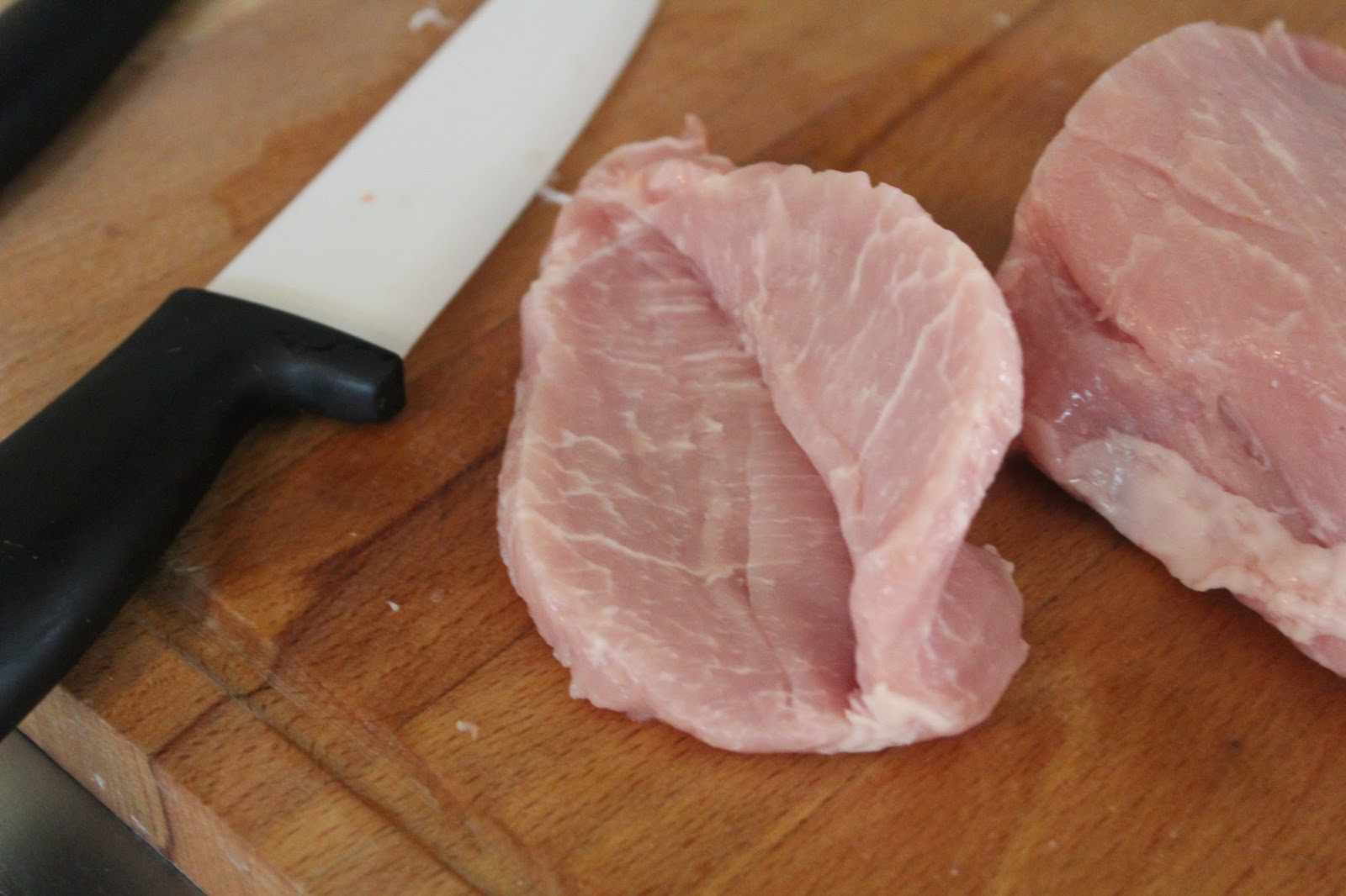 Das Fleisch soll gut daumendick geschnitten werden, damit man hinterher eine Tasche zum Füllen einschneiden kann.