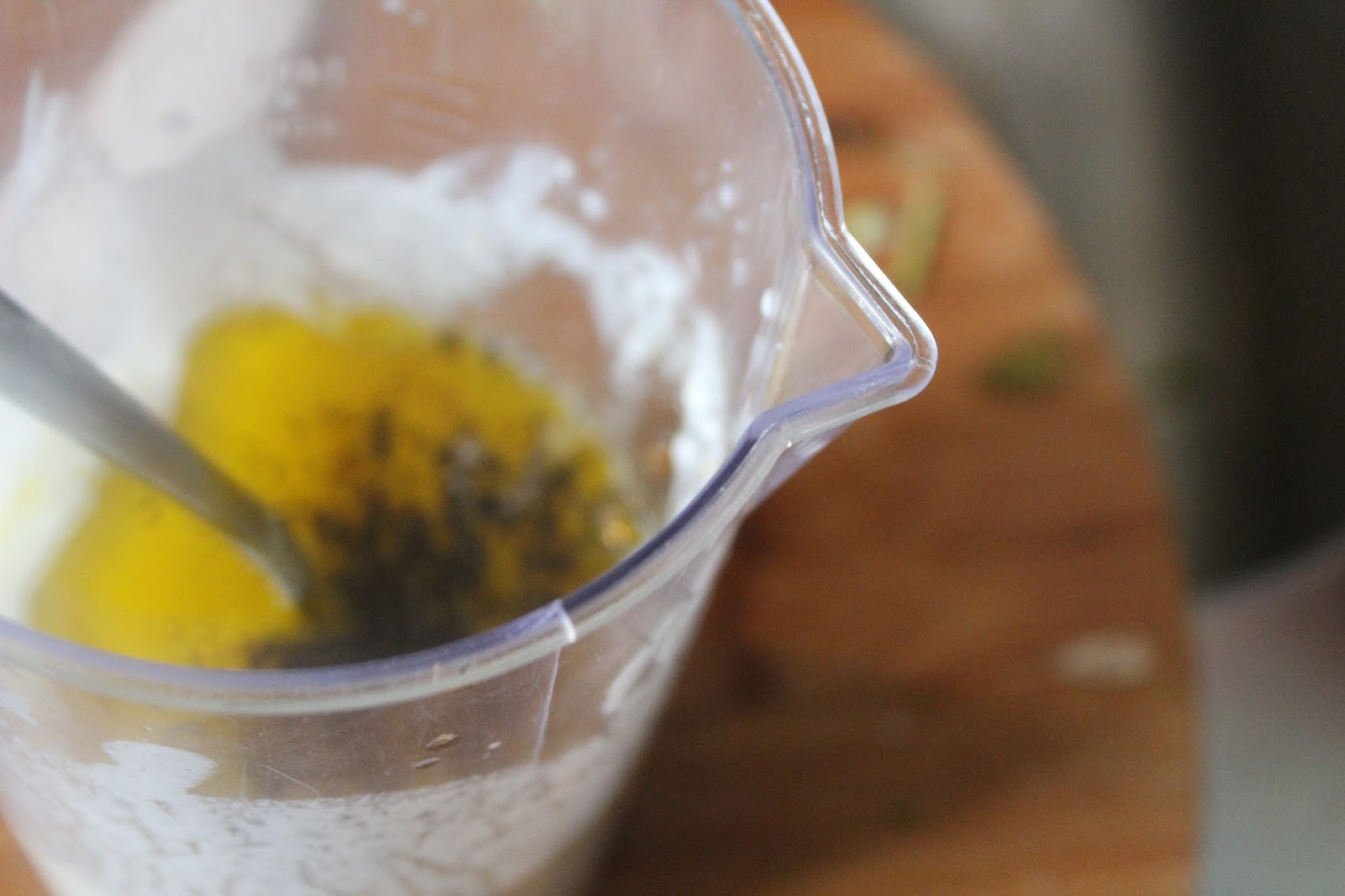 Blumenkohl ein wenig abkühlen lassen, damit die anderen Salatzutaten von der Restwärme nicht kaputt gemacht werden. Das Kochwasser nicht wegschütten.