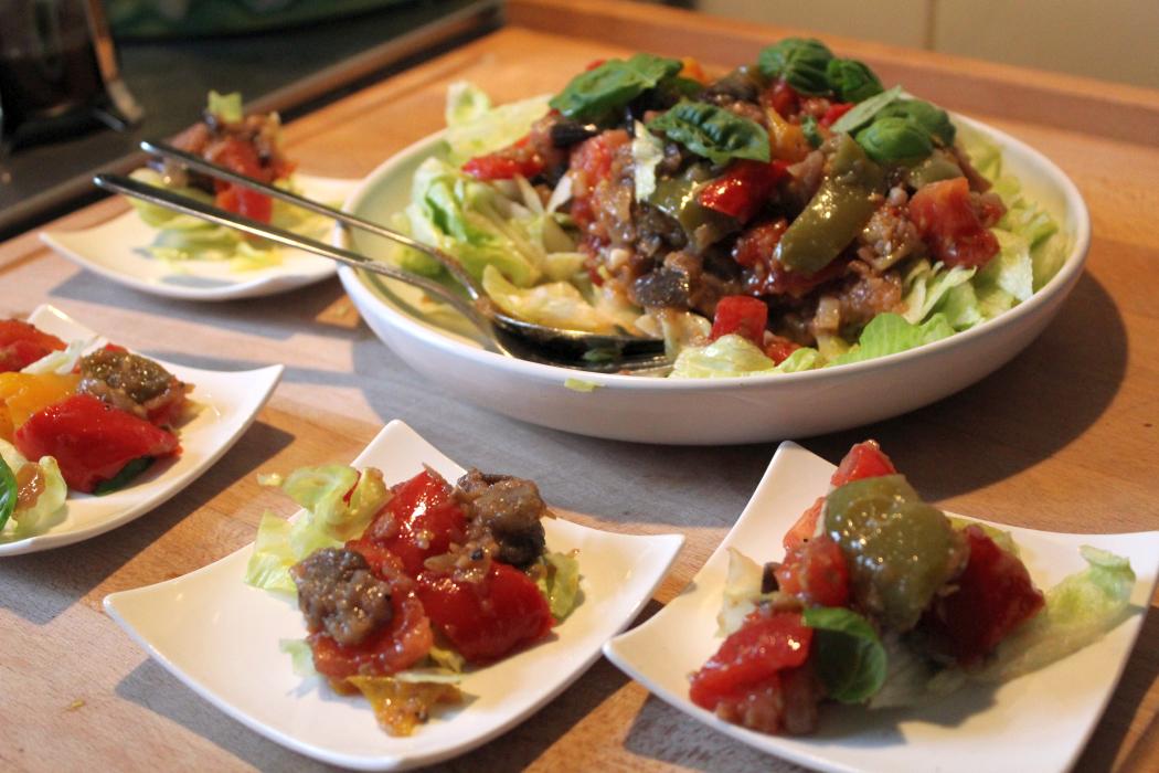 Deswegen bin ich auch schon gespannt auf den nächsten Abend, weil ich die leckere Ratatouille auch noch gerne als Salat essen möchte, mit den neu erworbenen Kenntnissen. Das kann man natürlich einfach kalt auch den Teller werfen und mit einem Baguette essen, kommt ja schließlich aus Frankreich. Salat ist für mich aber irgendwie immer Blattsalat, oder noch besser Rucola, den ich gerade nicht habe, also kann jetzt wieder das Eisbergsalatbashing losgehen. Es gibt halt gerade keinen anderen Salat in meinem Kühlschrank
