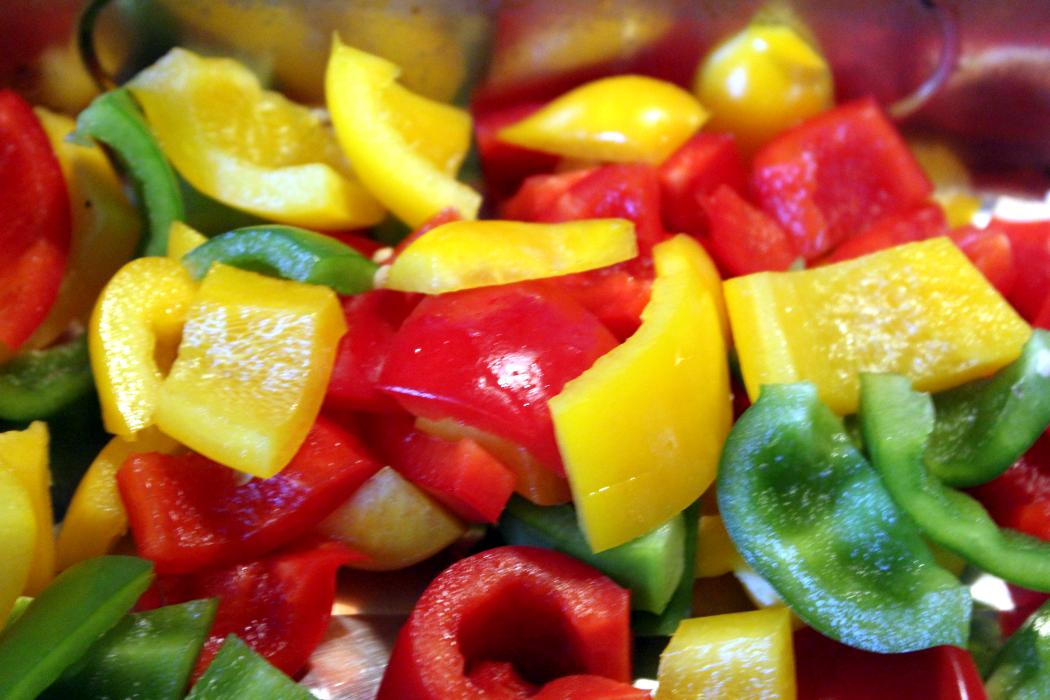 Drei Paprika entkernen und in mundgerechte Stücke schneiden