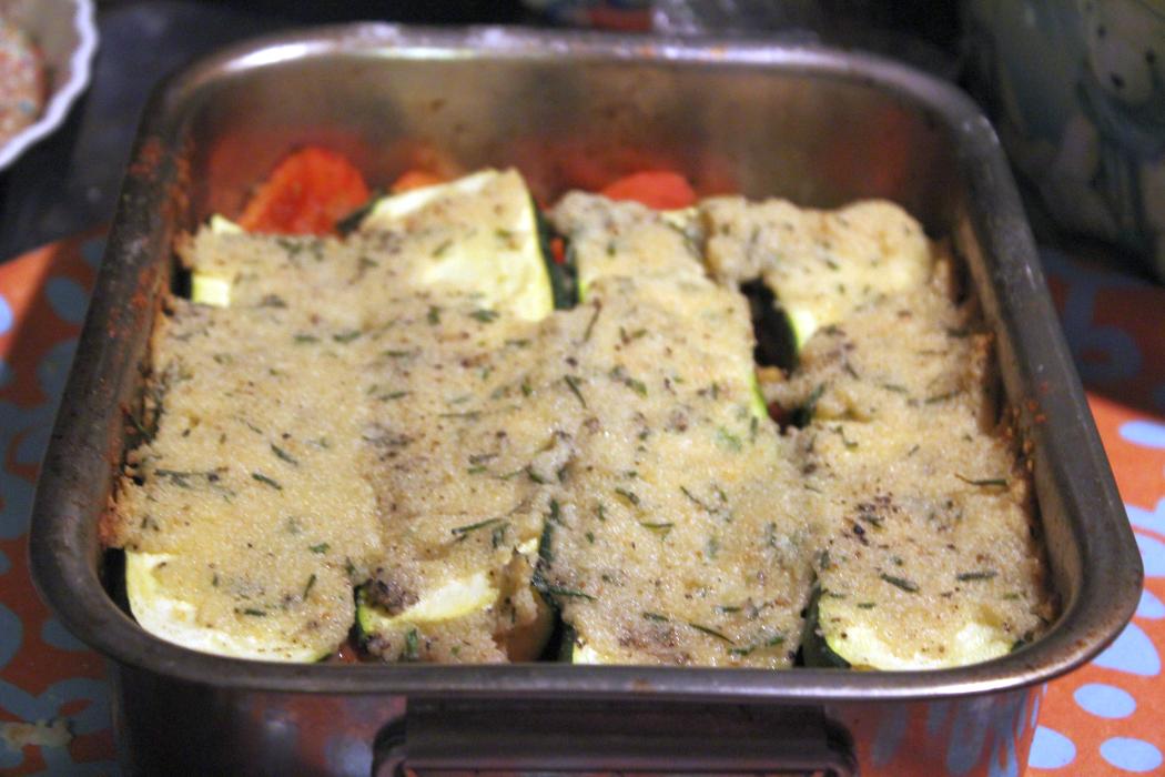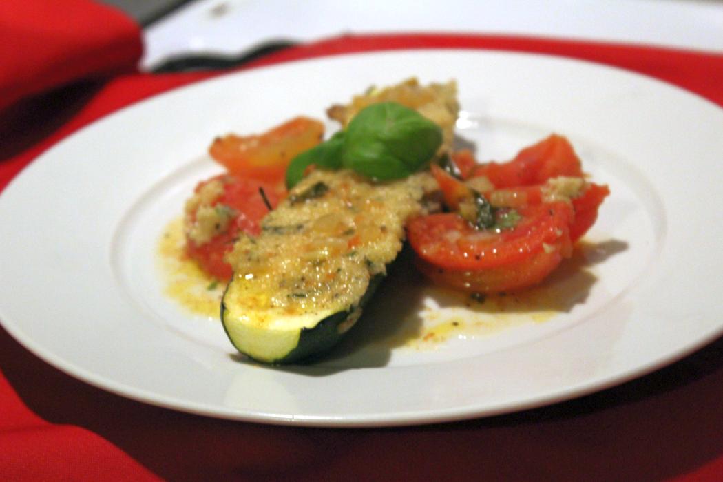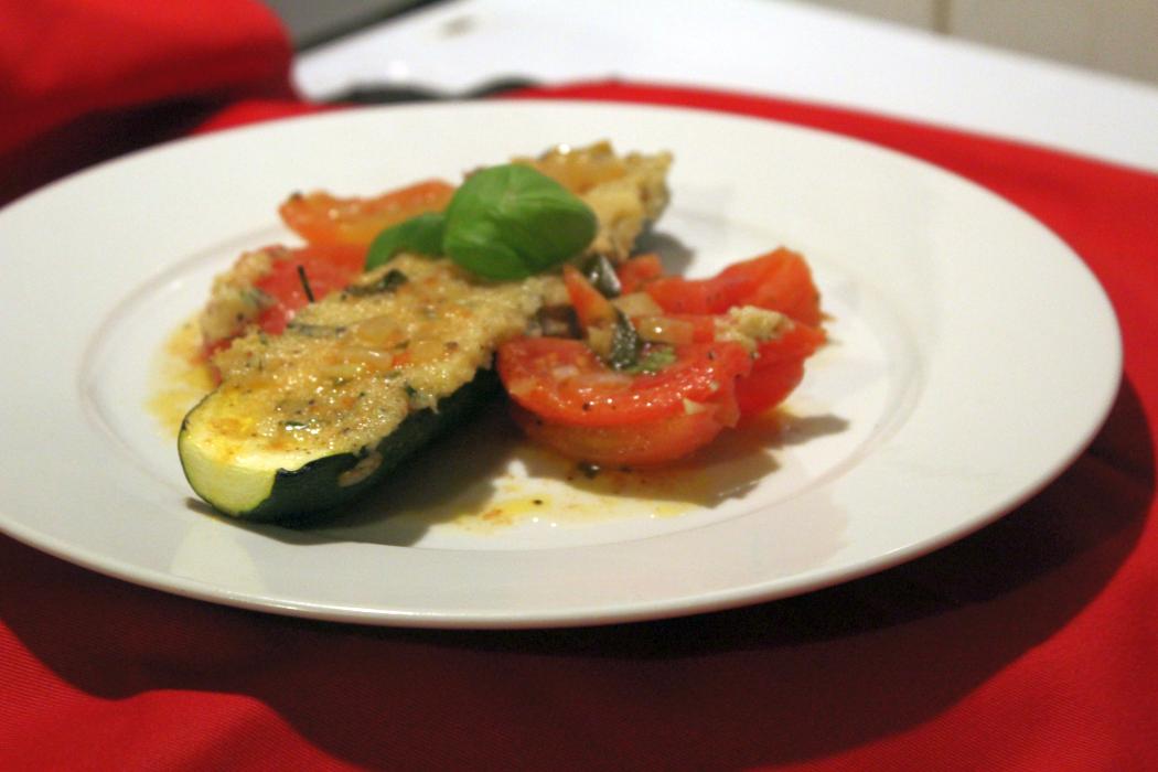 Leider habe ich dafür keinen italienischen Namen gefunden, aber das wird irgendwie “Zucchini al forno con Tomate lalala” heißen. Da danach sowieso niemand suchen würde verwende ich einen deutschen Namen für das Rezept.