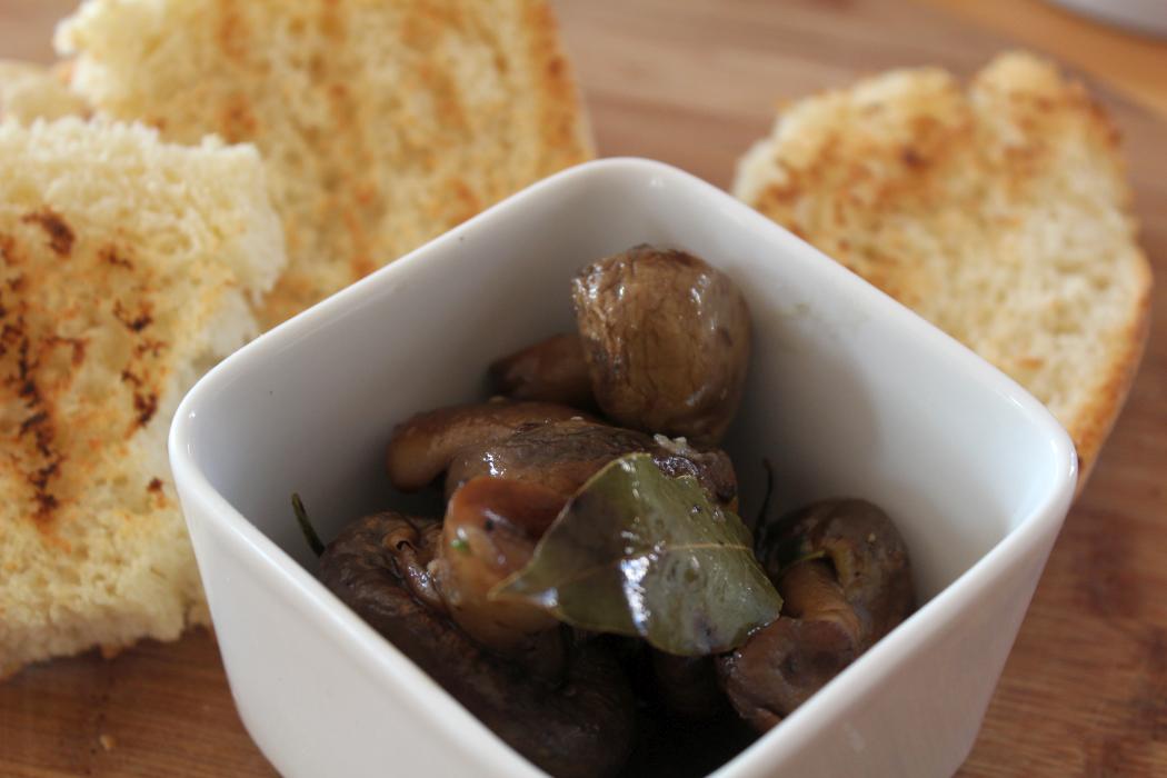 Das ist zusammen wirklich ein Traum, knuspriges Weißbrot und geschmorte Champignons