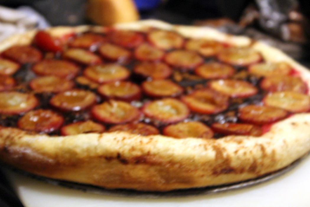 Der Teig für den Pflaumenkuchen ist Beifang, denn ich habe Toastbrot und Pizza aus dem Teig gebacken. Wenn man gleich etwas mehr davon macht, kann man mit den gleichen Ausgangstoffen und dem gleichen Aufwand total verschiedene Sachen herstellen und sich von der Vorspeise bis zum Nachtisch, wie an einem roten Faden durch das Menü durchhangeln.