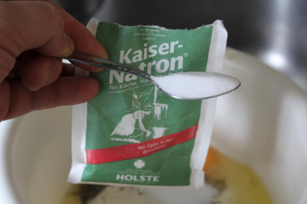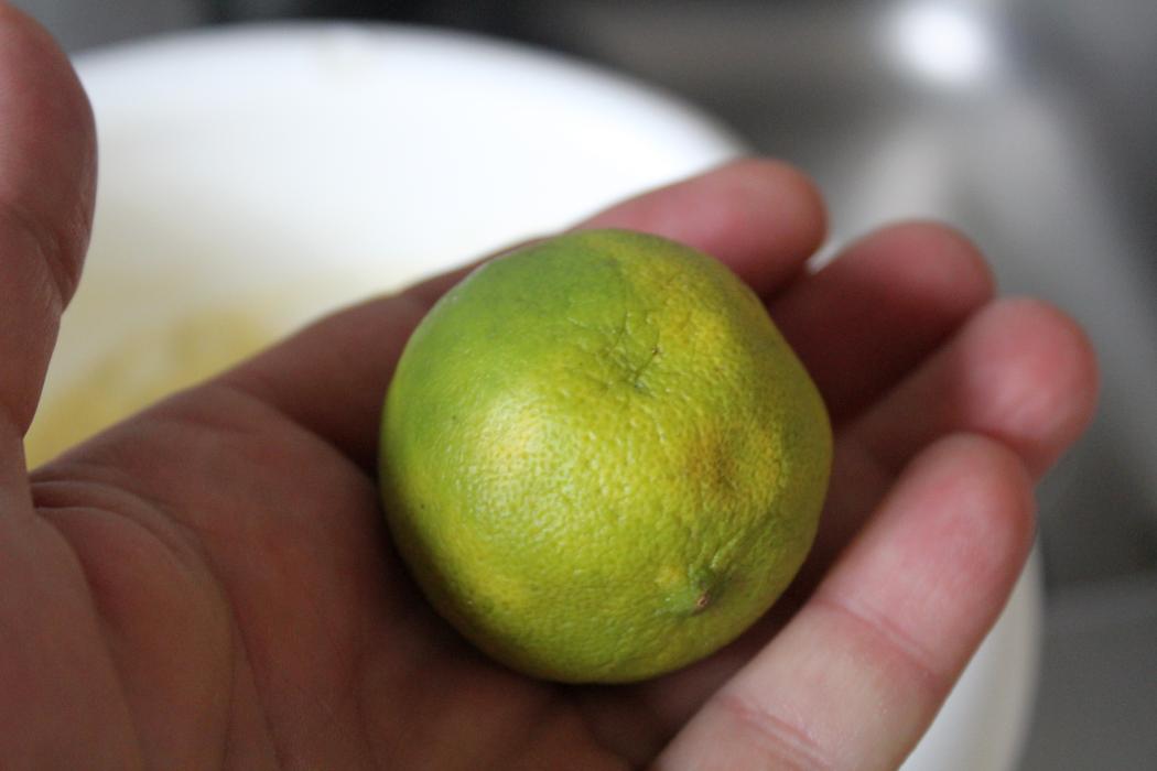 Den Saft einer halben Limette in den Teig pressen, weil das Natron die Säure braucht, um richtig zu arbeiten.