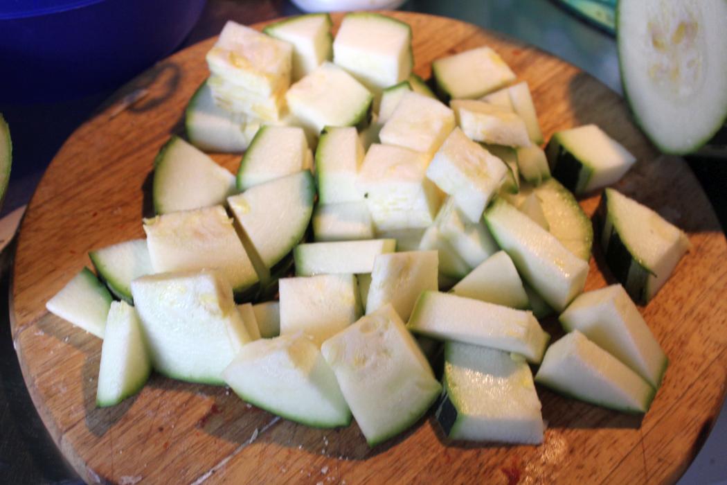 Zucchini in Würfel schneiden