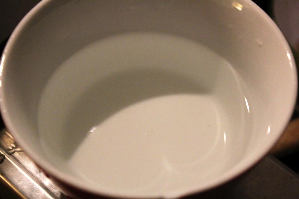 Die Puddingschüssel muss direkt vor dem Einfüllen der Puddingmasse mit kaltem Wasser ausgespült werden, damit man den Pudding später stürzen kann.