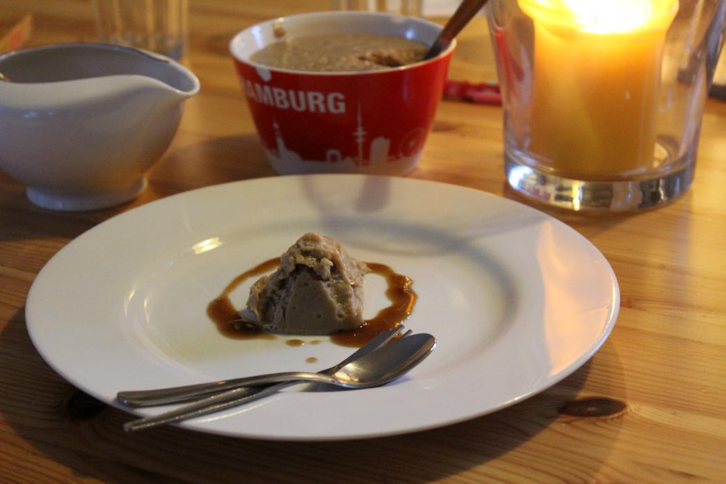 Der Pudding schmeckt toll nach Espresso und die Kaffeesoße harmoniert dazu natürlich perfekt.