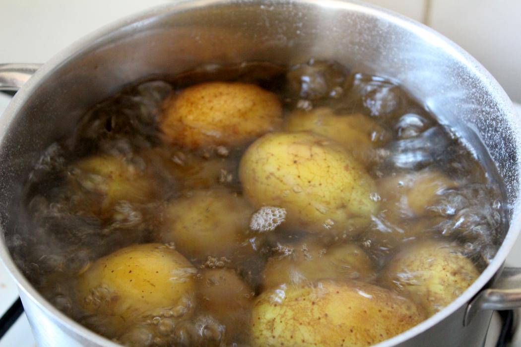 Pellkartoffeln in Salzwasser kochen. 20 Minuten wenn das Wasser kocht.