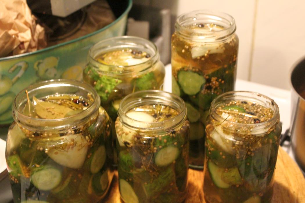 Ich koche meine Gurken immer so ein . Ganze Gurken , Sandwich Gurken , Honig Gurken usw . Immer einen Jahresvorat bis zur nächsten Ernte . Das hält sich wunderbar .