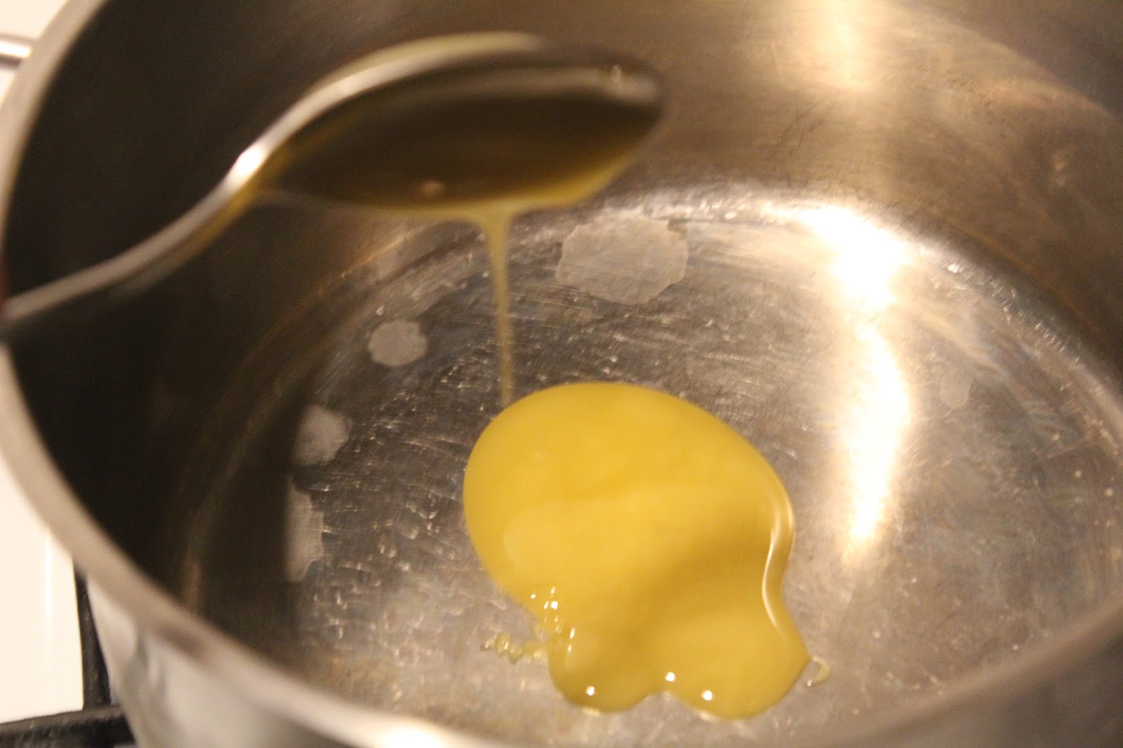 Einen Topf auf den Herd stellen, anheizen und die zwei Löffel Honig (oder Zucker) in den Topf geben.