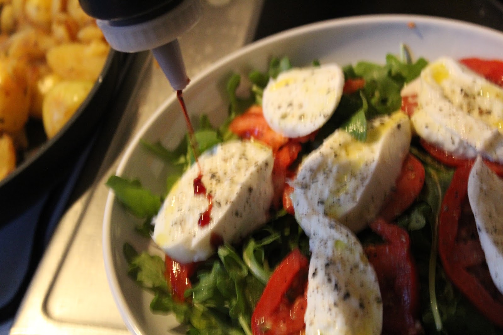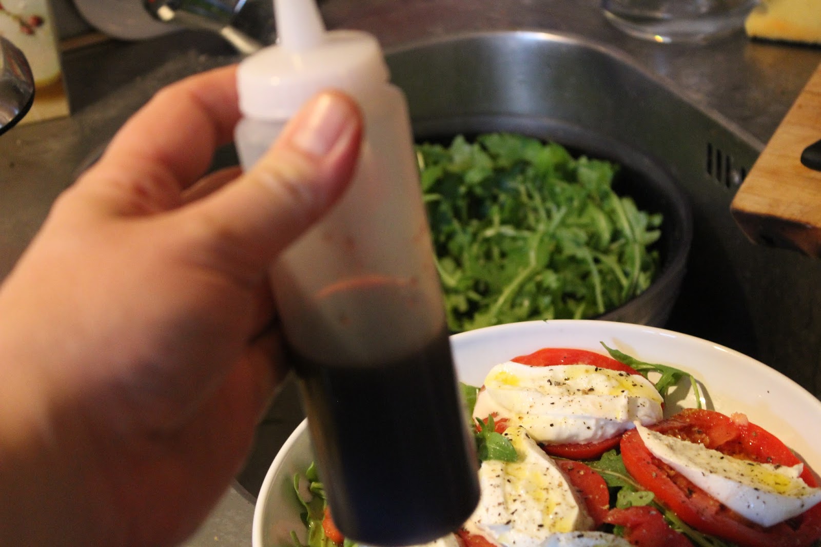 Ich habe in letzter Zeit, obwohl das schon seit fünf Jahren unter Strafe steht, immer noch so viel in scheußlicher Balsamicocreme ertränkten Mozzarella, Bonduelle Tütensalate und anderen Sondermüll gesehen, dass ich mir gedacht habe, es ist endlich mal Zeit, diesen degenerierten Plastikkram in einer selbst gemachten Version zu machen, um ein Gefühl für dieses “Lebensmittel” zu bekommen. Scheinbar besteht ja trotzdem allem immer noch Nachfrage dafür. Die Liste der Zutaten ist überschaubar und man kann eine Menge über das Reduzieren lernen, deswegen finde ich das gut, diese Köstlichkeit im Selbstversuch herzustellen.