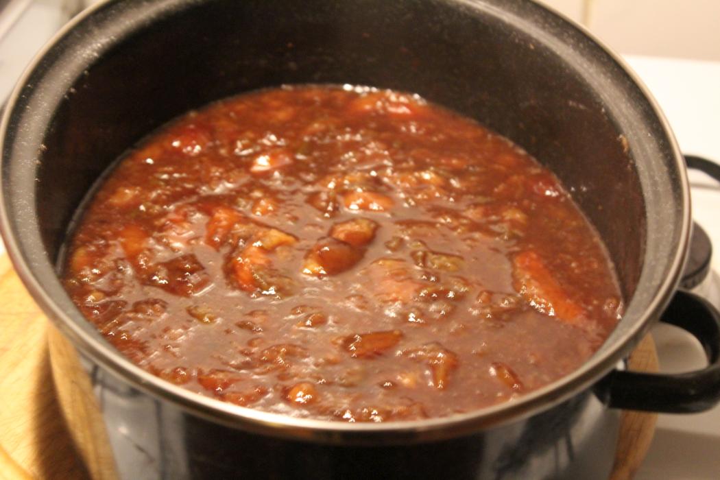 Insgesamt bleibt das Pflaumenmus VIER Stunden im Ofen
