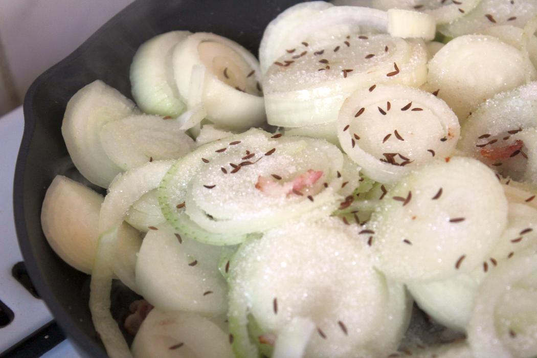 Kümmel, damit der Zwiebelkuchen insgesamt freundlicher für die Eingeweide wird.