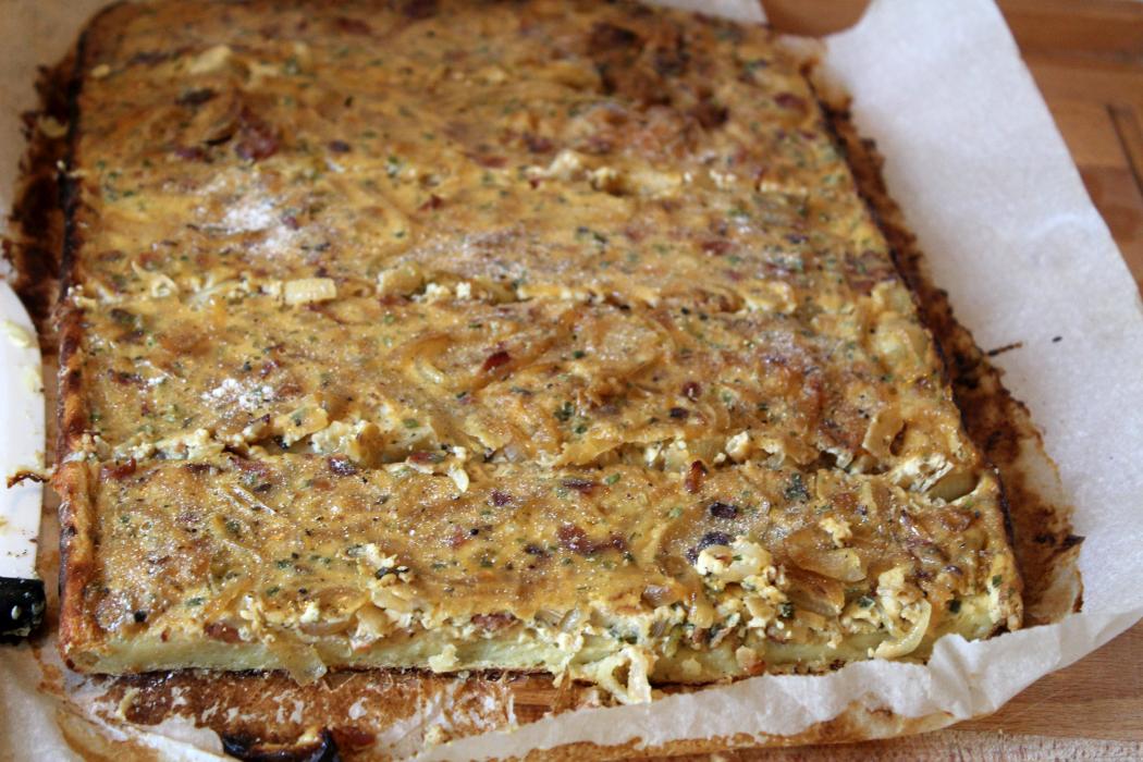 Von Zwiebelkuchen auf Hefeteig ist irgendwie schon jede Geschichte erzählt. Deswegen habe ich den Zwiebelkuchen dieses Mal mit einem Kartoffelteig gemacht. Schmeckt echt klasse und  ist  neu in meinem Universum, was nicht heißt, dass es das nicht irgendwo anders jeden Tag gäbe. Deswegen möchte ich Euch den natürlich nicht vorenthalten.