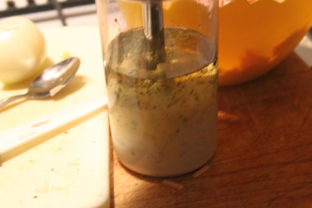 Abschmecken könnt Ihr die Mayonnaise auch noch und prüfen, ob Euch noch etwas wie Salz, Pfeffer oder Süße fehlt. Da das aber noch mit den anderen Zutaten und dem Gurkenwasser zusammen kommt, würde ich erstmal die Füsse stillhalten und erst das Endprodukt abschmecken.