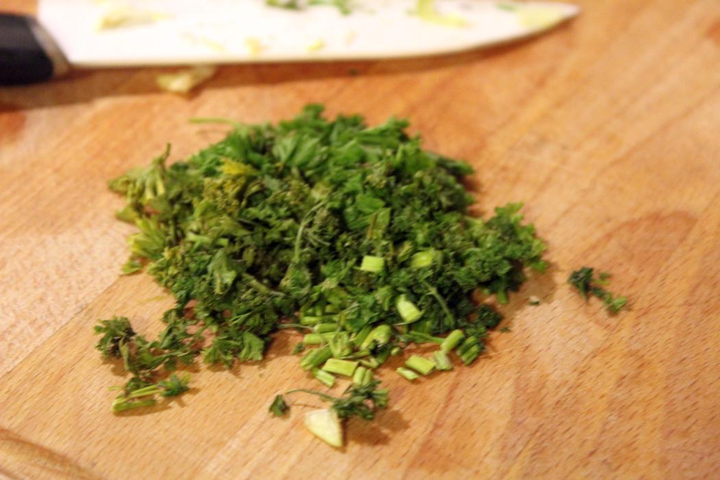 Hier sind die Grundzutaten versammelt. Wir gehen jetzt mal davon aus, dass die Nudeln schon im Topf sind und garen. Also schnell die anderen Zutaten zerkleinern, bzw vorbereiten.