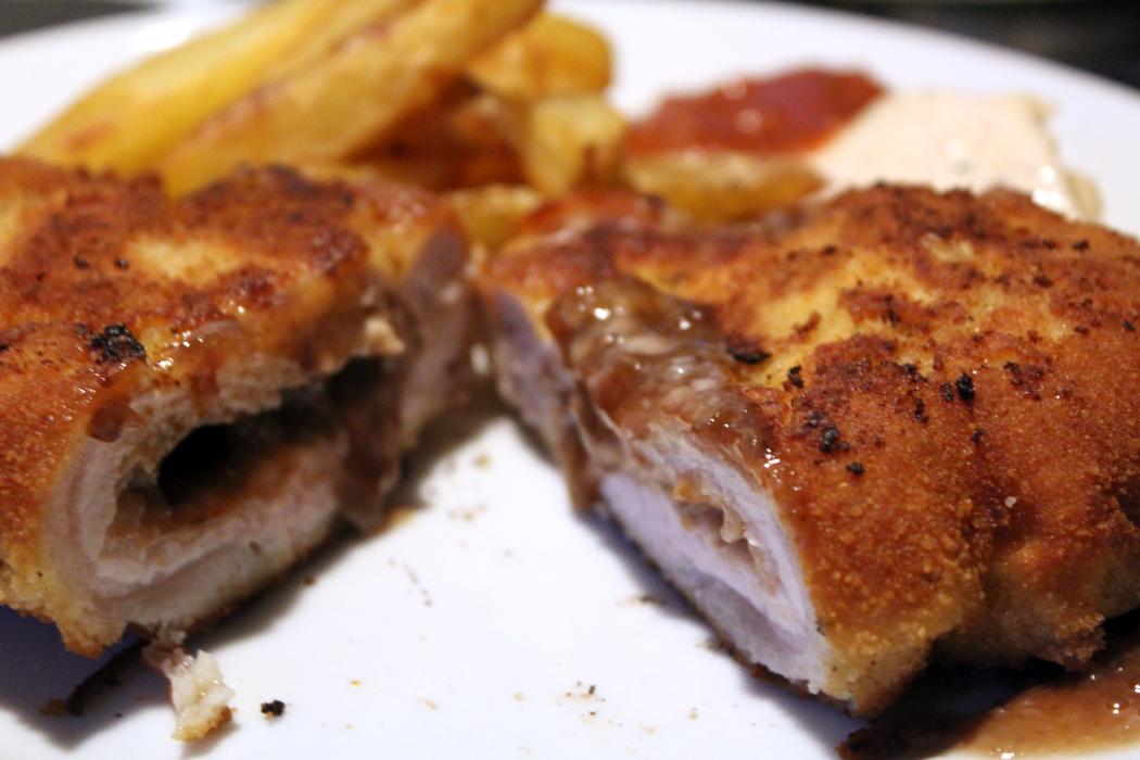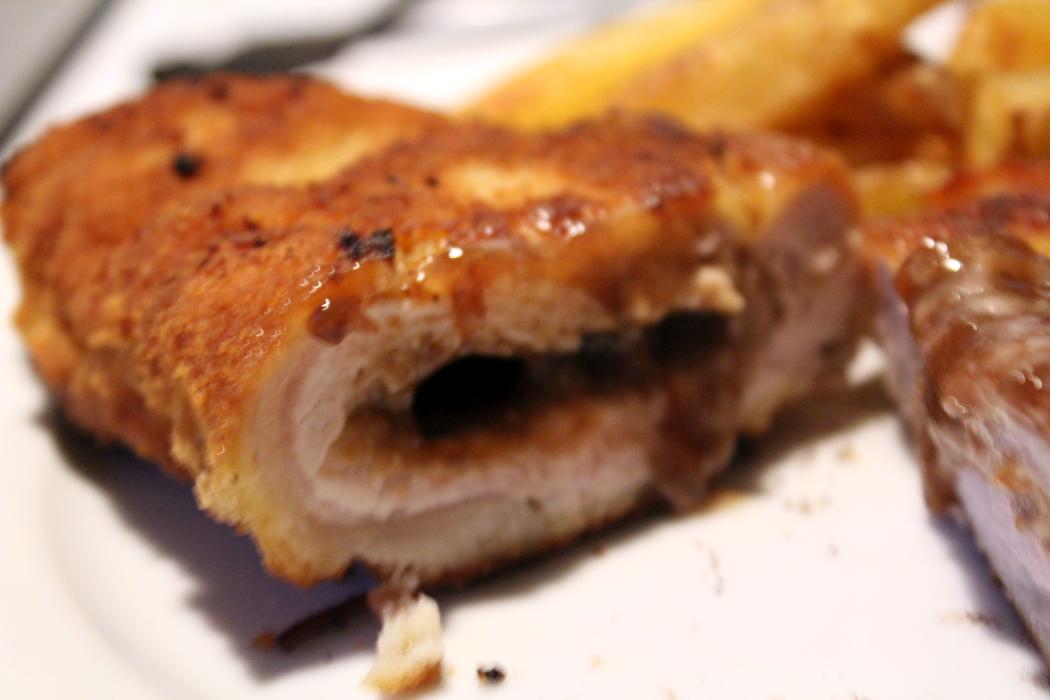 Extra für Euch habe ich das Schnitzel aufgeschnitten. Hier einmal Schnitzel mit Pflaumenmusfüllung in seiner ganzen Schönheit. Ihr wollt natürlich wissen, wie das schmeckt, oder?