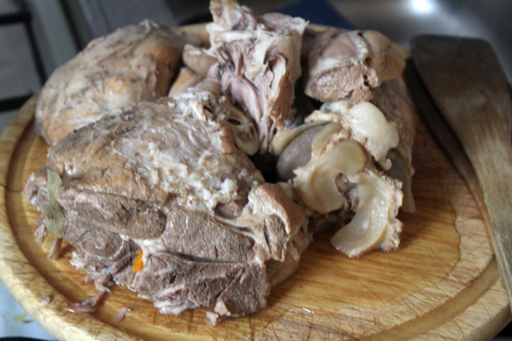 Ich hatte das übrig vom Sülzekochen und überlegt was damit tue. Sauce ist gut. Und das Fleisch auf Brot ist auch gut.