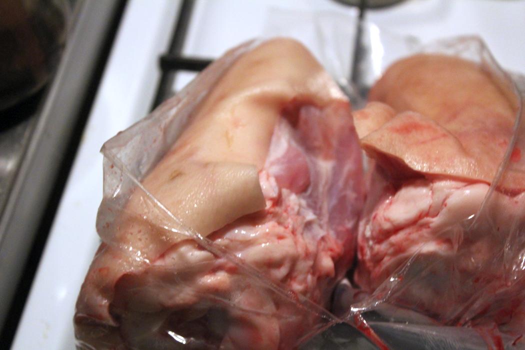 Freitag nach Feierabend war ich bei Metro einkaufen. Ich laufe dann meinen Einkaufzettel ab und stöbere ansonsten immer noch ein bisschen rum, ob es irgendwas gibt, was ich brauchen kann und mir im Blog noch fehlt, oder worauf ich spontan Lust bekomme. In der Fleischabteilung sind mir dann die Schweinshaxen über den Weg gelaufen.