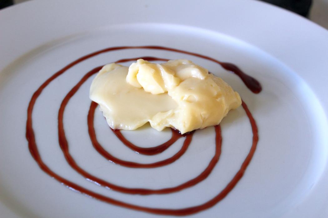 Irgendwas buntes, um einen Spiegel auszulegen, Schokosoße, Balsamicocreme, Karamellsoße, irgendwas was weg muss.