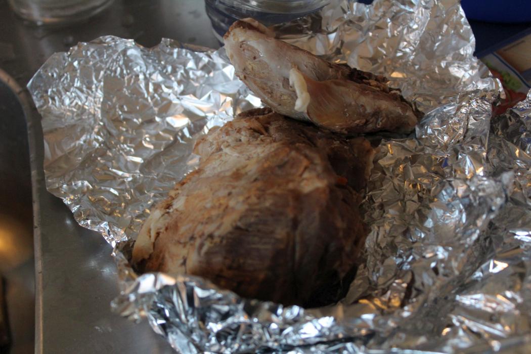 Solche Rezept entrümpele ich schon seit ein paar Jahren mit Vorliebe, um ihnen ein neues Gesicht zu verpassen und den Mief zu nehmen. In diesem Fall habe ich mir Eisbein bei Metro mitgenommen, um eine Brühe zu kochen. Das Fleisch wirft man hinterher natürlich nicht weg, sondern verwendet es weiter und sucht nach neuen Verwendungsmöglichkeiten. Auf Sandwich ist es jedenfalls ganz schön entstaubt.
