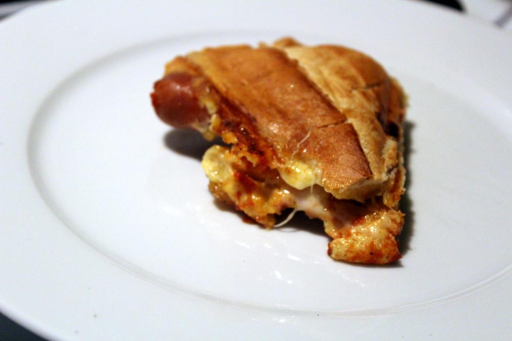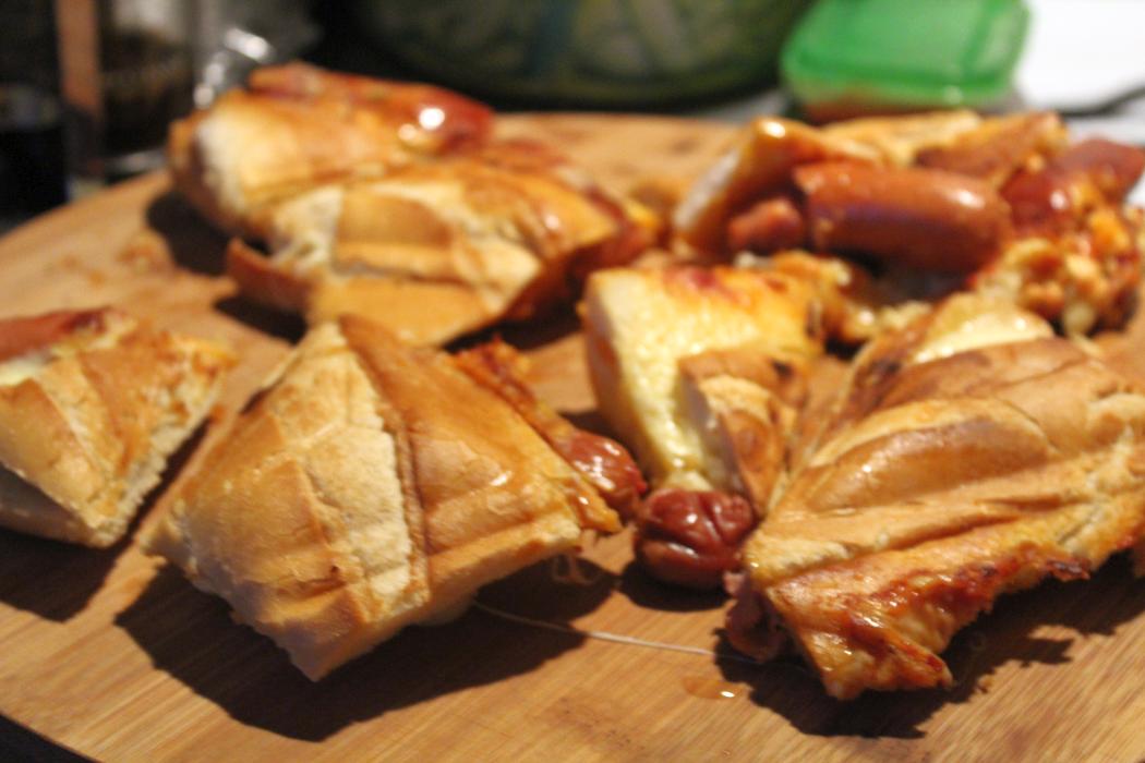 Das ist ein Klassiker am Wochenanfang. Die Kunden drehen dann immer alle total am Rad und rauchen mich zehn Stunden lang am Telefon und per Mail auf. Zuhause lagert noch irgendwas vom Wochenende, das aus irgendwelchen Gründen Samstag beim Einkauf bei den Kindern total angesagt war, dann aber auf dem Tisch als nicht mehr so wichtig eingestuft wurde. So ein leicht angetrocknetes Baguette steht dann immer kurz davor entsorgt zu werden, oder noch eine zweite Karriereschance auf dem Sandwichmaker zu bekommen. Das Baguette auf Längen zerteilen, die so ähnlich sind wie normale Brötchen.