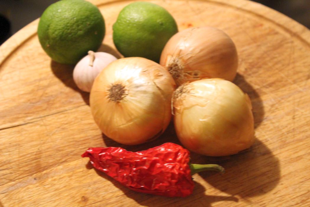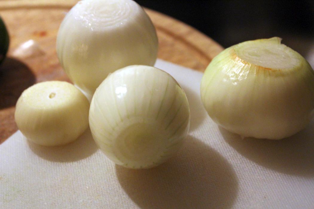 Zwiebeln in Ringe schneiden, Knoblauch grob hacken.