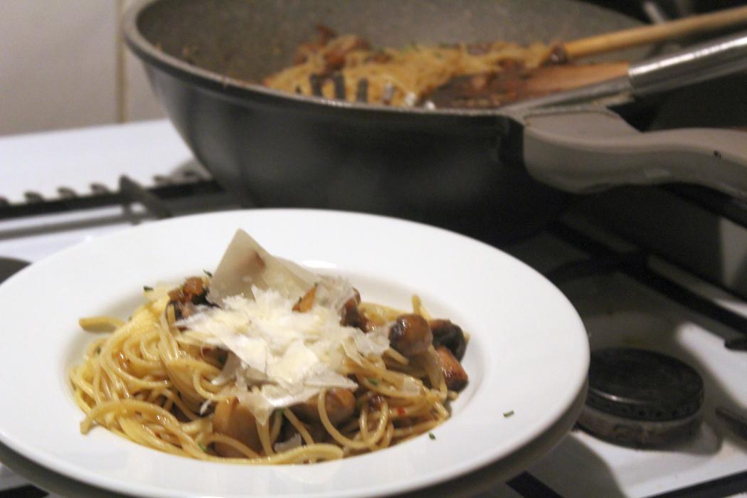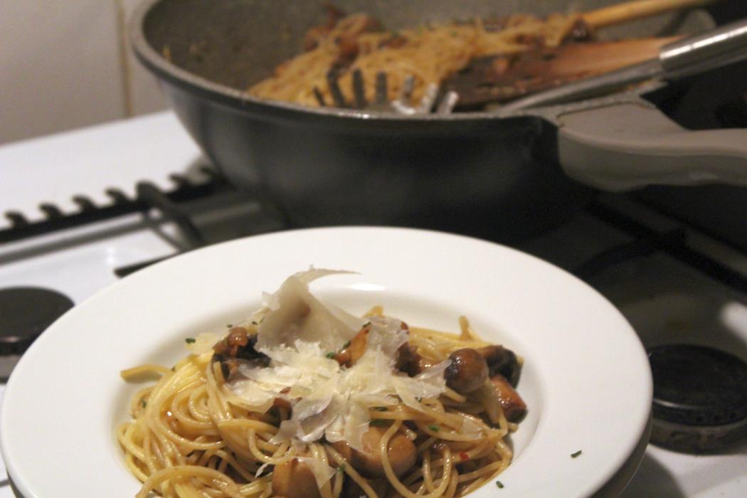 Bloß gut, dass es die südländische Küche gibt, bei der man mit wenigen Zutaten viel beschicken kann. Hier ganz einfach frische Champignons mit Spaghetti