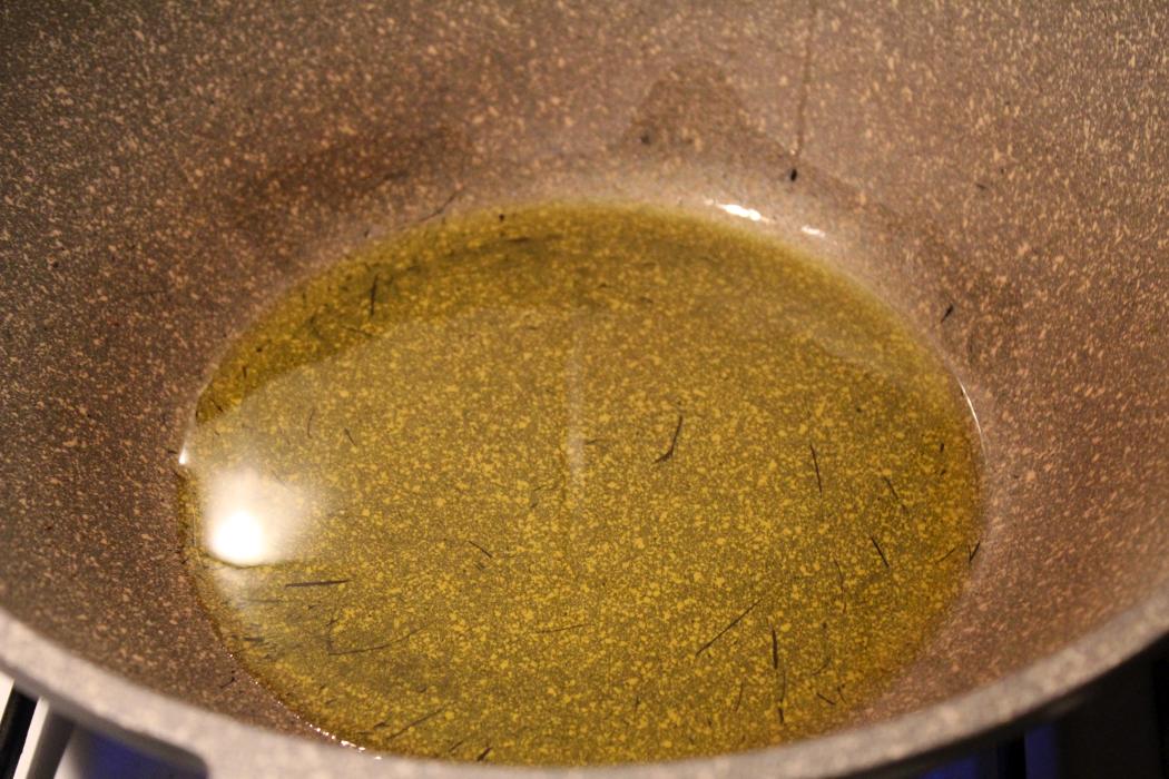 Olivenöl in einer Pfanne, einem Topf, oder wie in diesem Fall in meinem Wok von diePfanne.com erhitzen. Da bei dem Gericht nicht viel Soße anfällt, nicht mit dem Öl sparen.