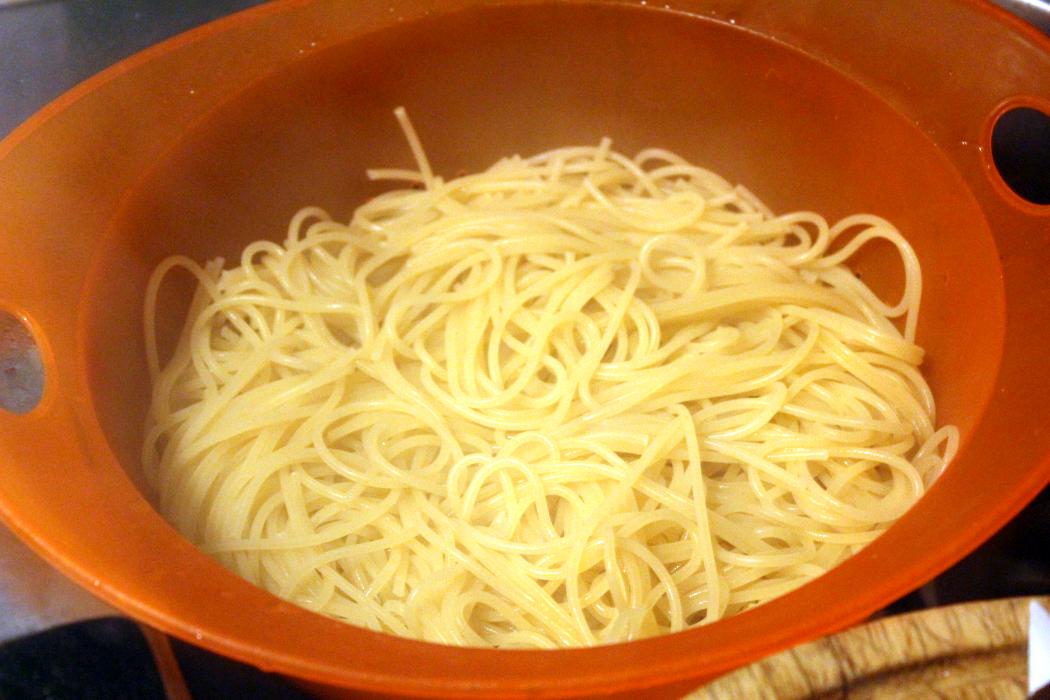 Die einzig mögliche Steigerung, wäre jetzt noch die Spaghetti selbst zu machen, aber an Nudeln aus der Packung ist auch nichts Schlechtes dran und Ihr ausschließliches Manko ist, dass man weiß, dass sie nie so gut schmecken, als wenn man sie selbst gemacht hat. Damit muss man dann eben umgehen können, wenn man nach 30 Minuten am Tisch sitzen und essen kann.