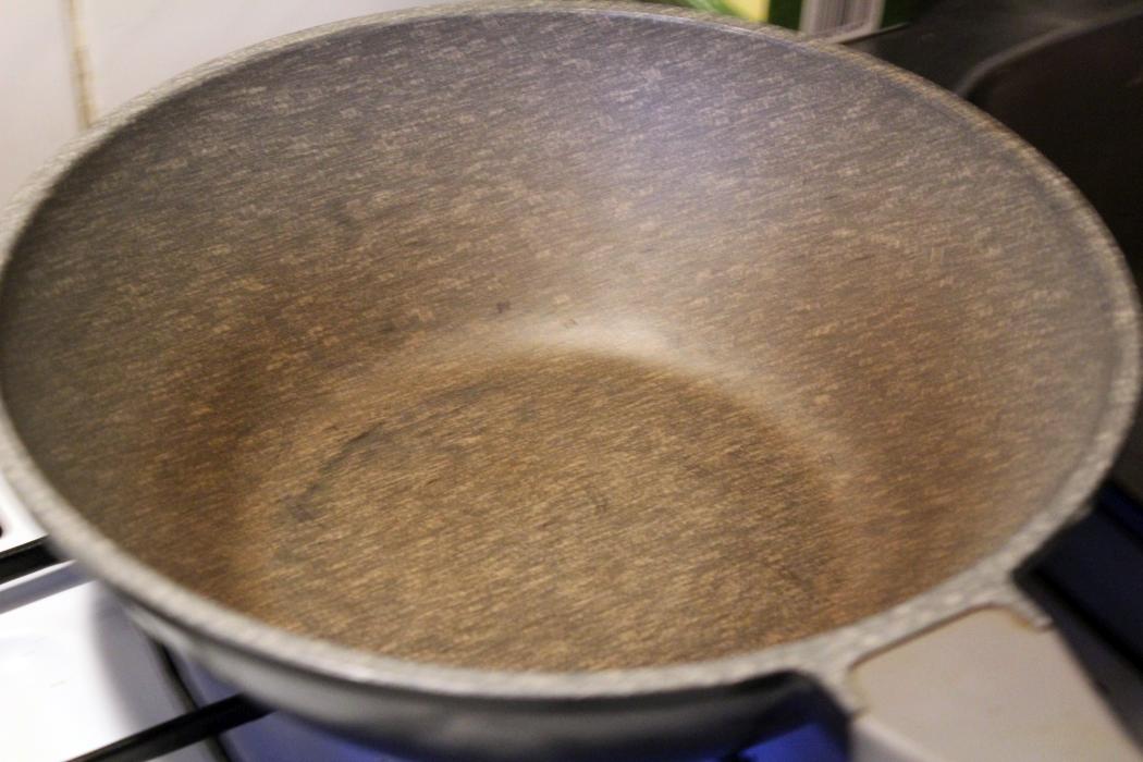 Olivenöl in den Wok geben und ordentlich erhitzen