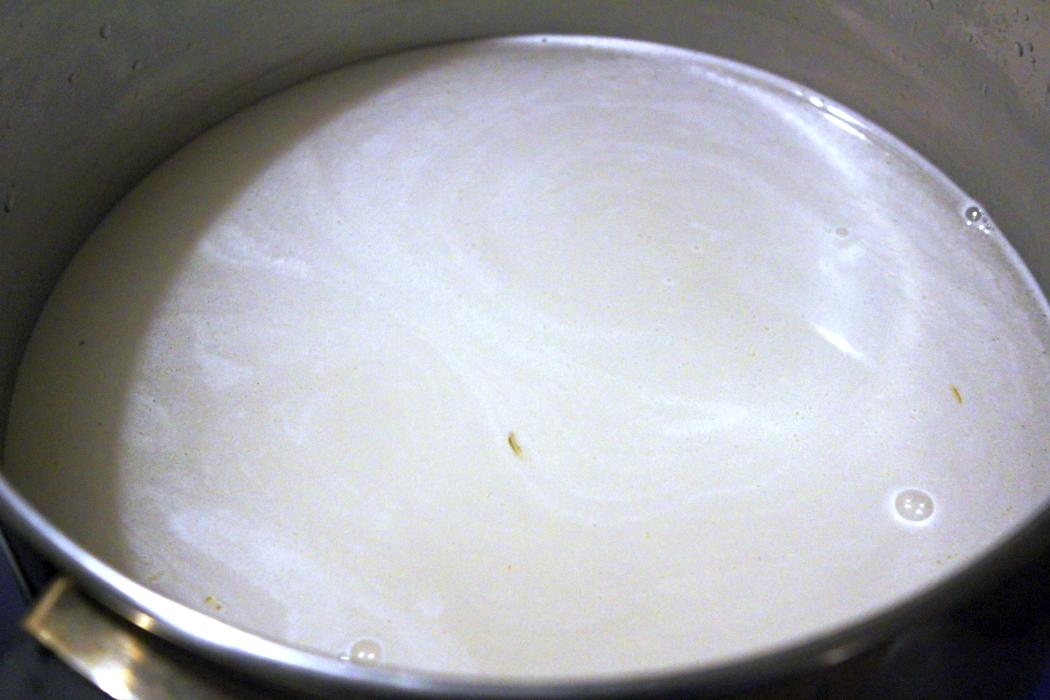 Nun einmal kurz mit einem (Glas)deckel abgedeckt zum Sprudeln bringen und dann auf die kleinste Herdplatte auf kleiner Temperatur köcheln lassen. Ich stelle mir einen Kurzzeitwecker jeweils auf 15 Minuten und drehe das Fleisch um. 82 Grad Kerntemperatur solltet Ihr zwischen einer Stunde und einer Stunde 15 Minuten Schmorzeit haben, nachdem der Deckel auf dem Wok liegt