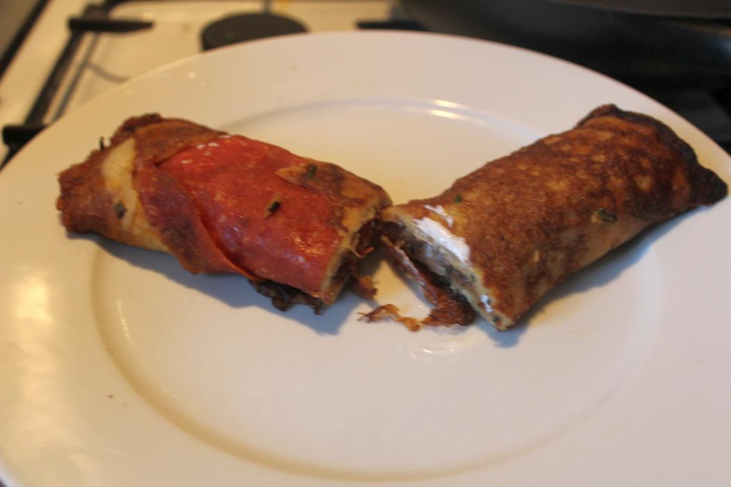 Für Euch zum Zeigen, die Pfannkuchenrolle aufgeschnitten