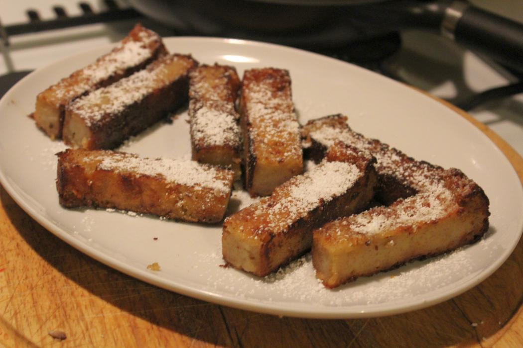 Bananenbrot in Streifen oder Stücke schneiden