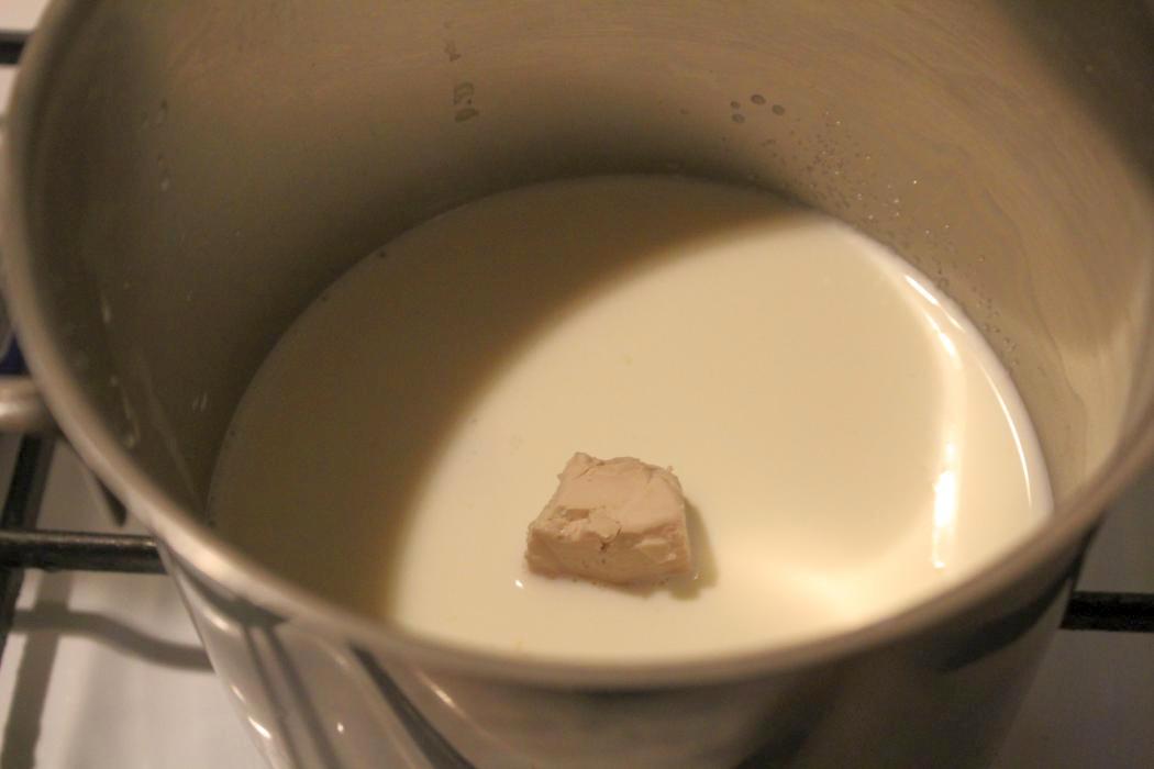 Hefe durch rühren in der Milch auflösen.