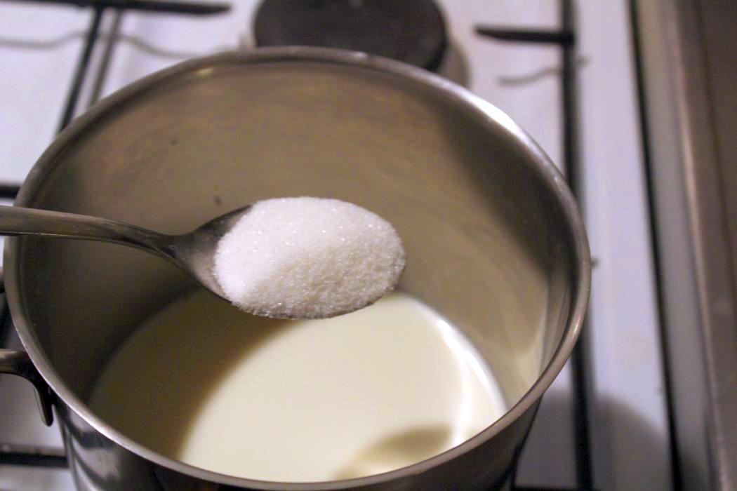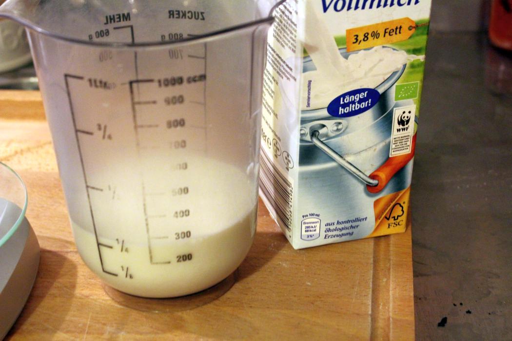 Die Milch mit der Hefe dazu kippen.