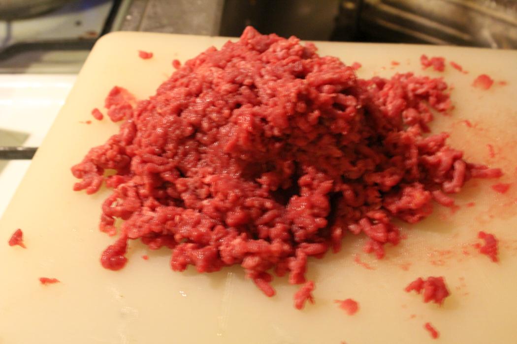 Als Fleisch habe ich ein Stück Rindernacken verwendet und selbst gewolft. Wer sich nicht daran stört, das Fleisch von 60 Tieren in einer einzigen 500 Gramm Packung zu haben, kann sich das Hackfleisch auch im Supermarkt kaufen.