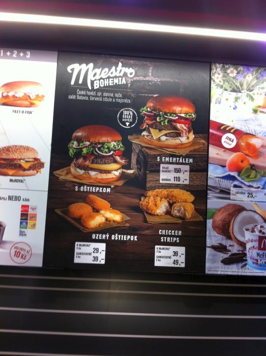 Lustig, böhmische Wochen bei Mc Doof in Tschechien. Dann nehme ich einmal den Karel Gott Burger und zum Nachtisch Dolly Buster, aber mit doppelt Sahne.