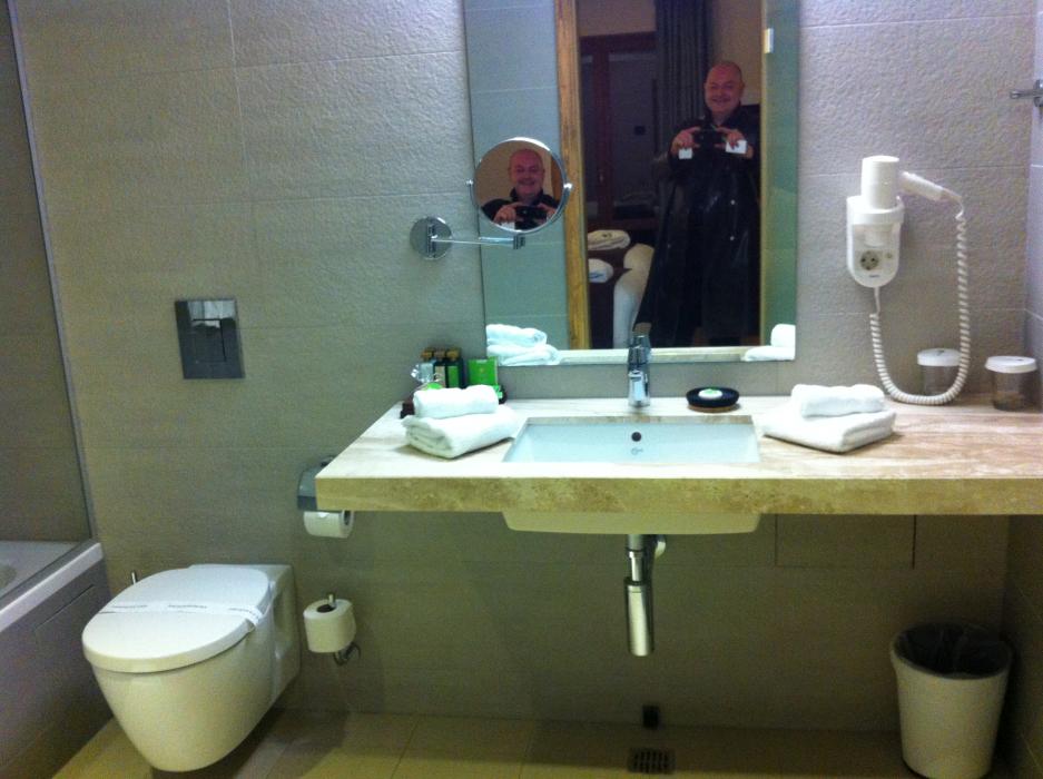 Das letzte Stück bis Brasov waren noch 130 Kilometer, aber auf der Landstraße zieht sich das echt hin. Das Hotel liegt nicht in Brasov, sondern gaaaanz oben auf dem Berg. Ich habe echt gedacht, ich komme hier nie mehr an, weil es immer weiter hoch auf den Berg geht. Ohne Navi muss man sich ja immer auf das verlassen, was einem die Tankstelle und der Taxifahrer unterwegs sagt. Das ist hier in Brasov Poiana ein richtiger Wintersportort, höchstwahrscheinlich das beste was Rumänien zu bieten hat. Das Hotel ist frisch renoviert und war vorher schon so ein Sozialistentempel für Linientreue.